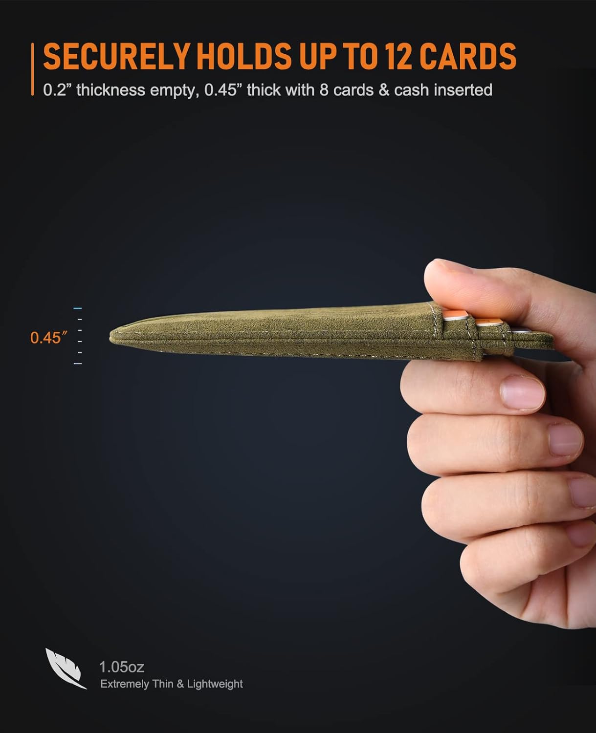 Buffway Slim Minimalist Front Pocket RFID Blocking Leather Wallets for Men and Women - At Sahara Desert Green