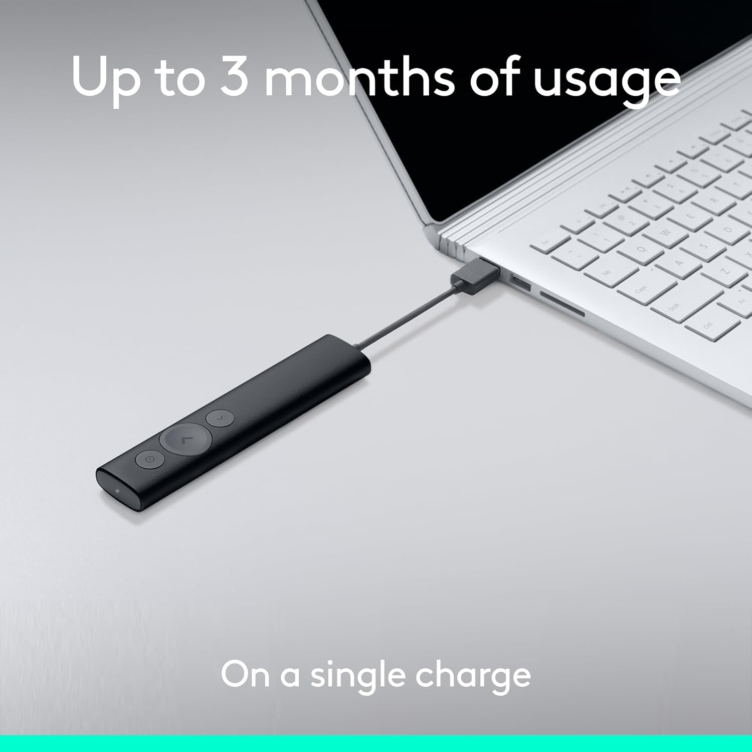 Logitech Spotlight Presentation Remote - Universal Wireless Presentation Clicker with Laser Pointer, Advanced Digital Highlighting, Bluetooth, 30 m Range and Quick Charging - Black