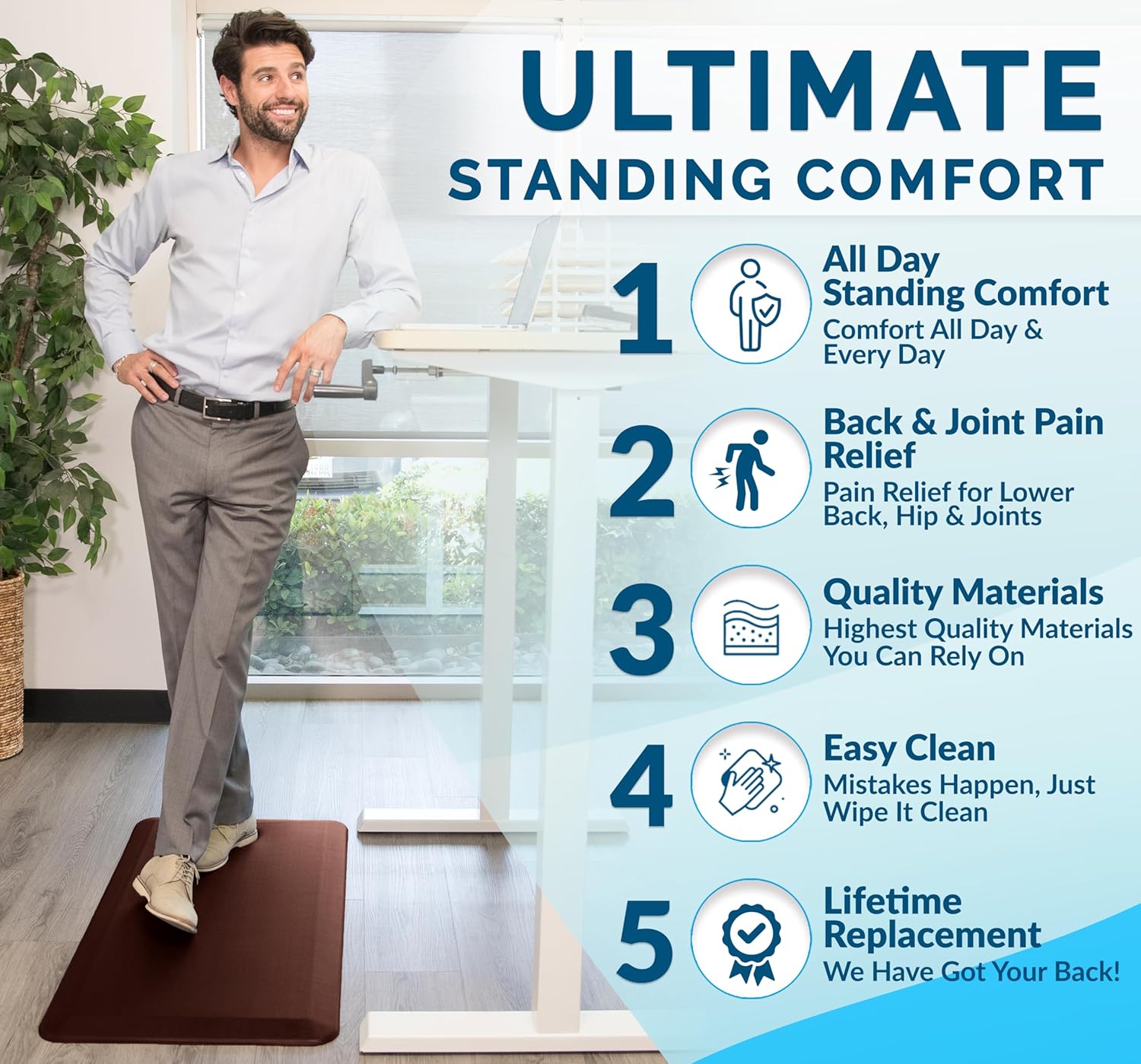 ComfiLife Anti Fatigue Floor Mat – 3/4 Inch Thick Kitchen Mats for Floor, Standing Desk Mat, Kitchen Rug – Comfort at Home, Office – Durable – Stain Resistant – Non-Slip Bottom (20" x 39", Brown)