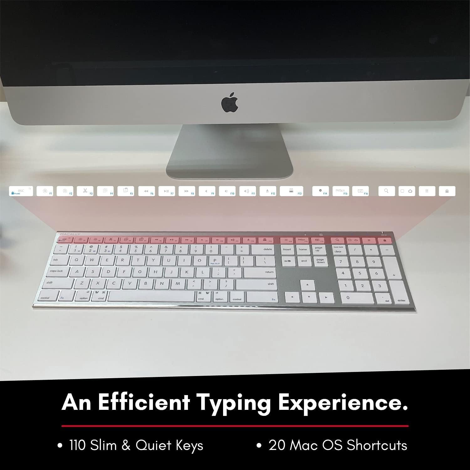 Macally Wireless Bluetooth Keyboard for Mac - Compatible Apple Keyboard or MacBook Pro/Air, iMac - Multi-Device, Up to 3 Devices with 110 Keys, 20 Shortcuts, Numeric Keypad, and Rechargeable - Silver