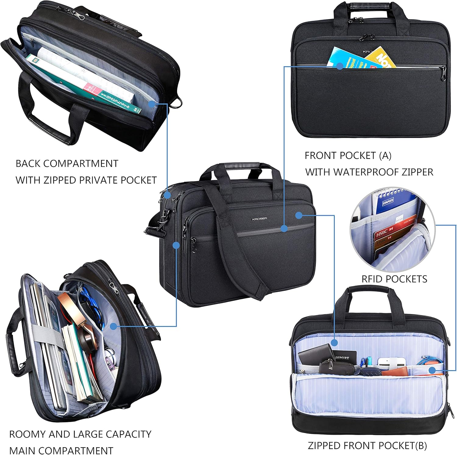 KROSER Laptop Bag Premium Laptop Briefcase Fits Up to 17.3 Inch Laptop Expandable Water-Repellent Shoulder Messenger Bag Computer Bag with RFID Pockets for Travel/Business/Men/Women-Black