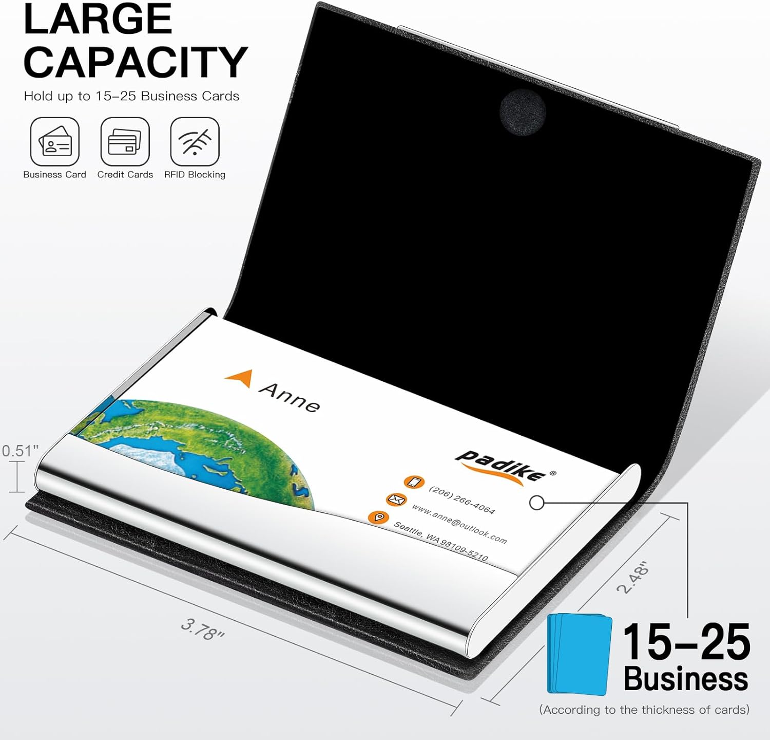 - Business Card Holder is made of high quality PU leather and stainless steel.