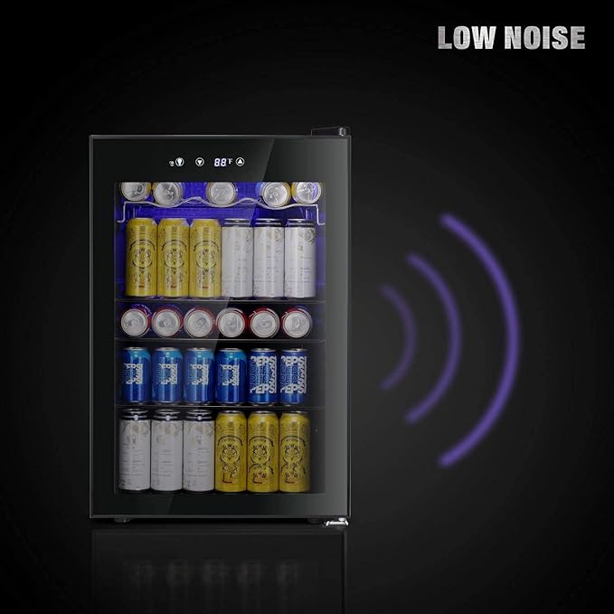 - ESSECTIVE BEVERAGE COOLER-This beverage refrigerator runs on a powerful but quiet compressor. Soft LED light making it easier to find a drink.The shelf is removable and can control the interior space.