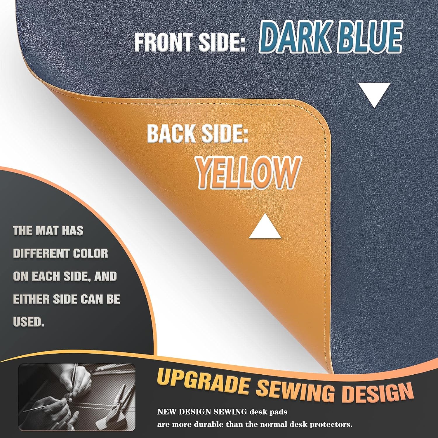 K KNODEL Desk Mat, Blotter, Dual-Sided Office Desk Pad, Waterproof Desk Mat for Desktop, Desk Blotters, PVC Leather Pad Protector (Dark Blue, 31.5" x 15.7")