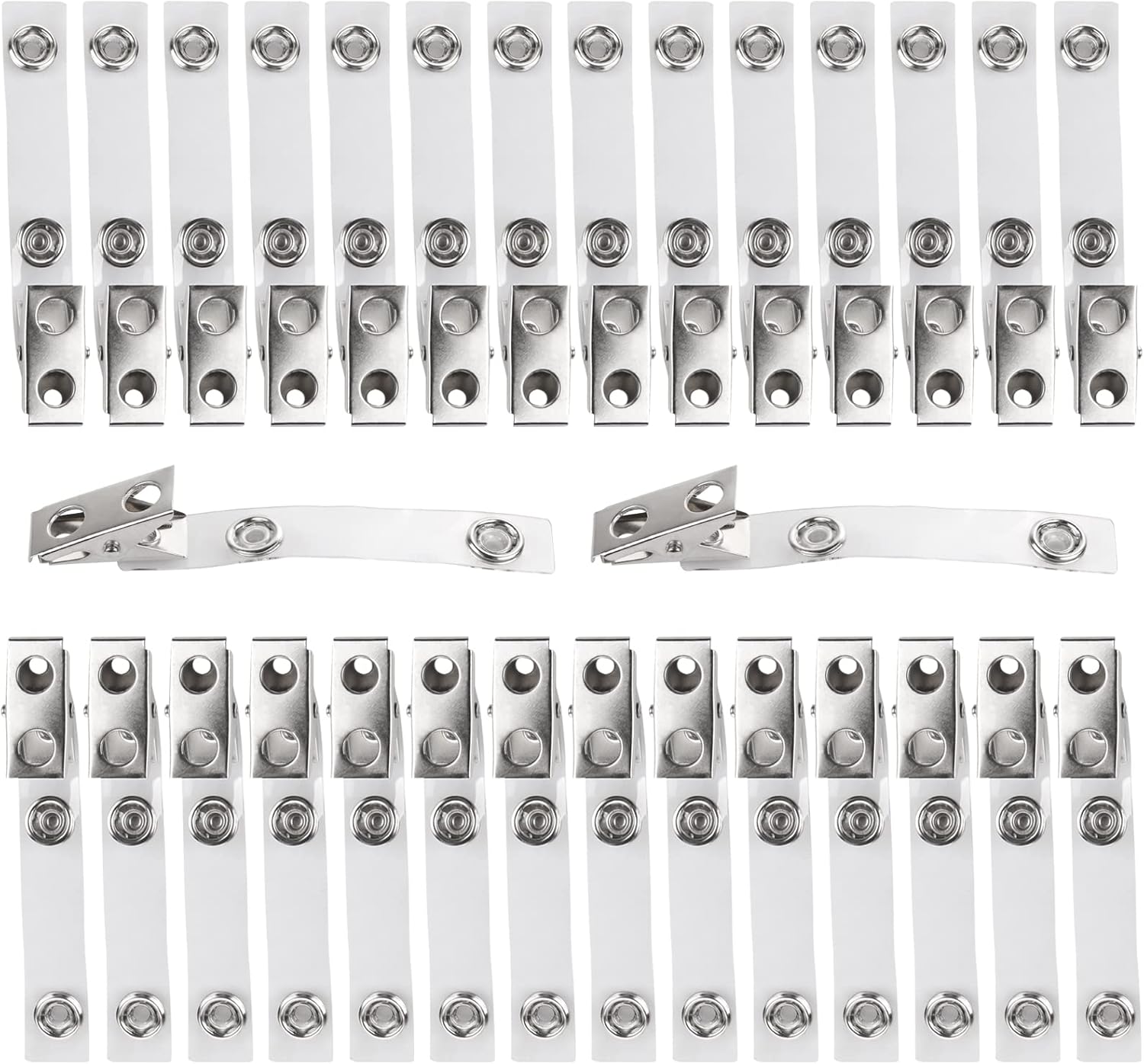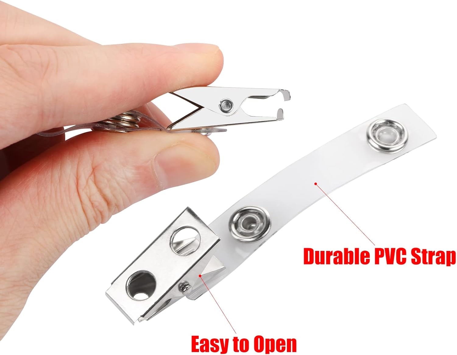 CABAX 30 Pcs Double Hole Metal Badge Clips with PVC Straps, ID Strap Clip Adapter ID Badge Clips for Badge Holders,Office,School, Clear