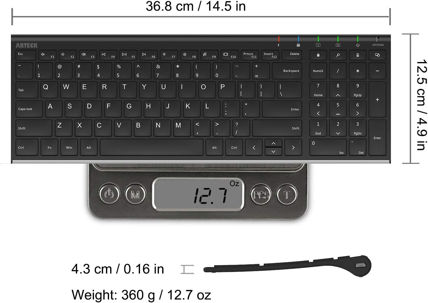 Arteck USB Wireless Keyboard Stainless Steel Ultra Slim Keyboard with Numeric Keypad for Computer/PC/Laptop and Windows 11/10/8 Rechargeable Battery