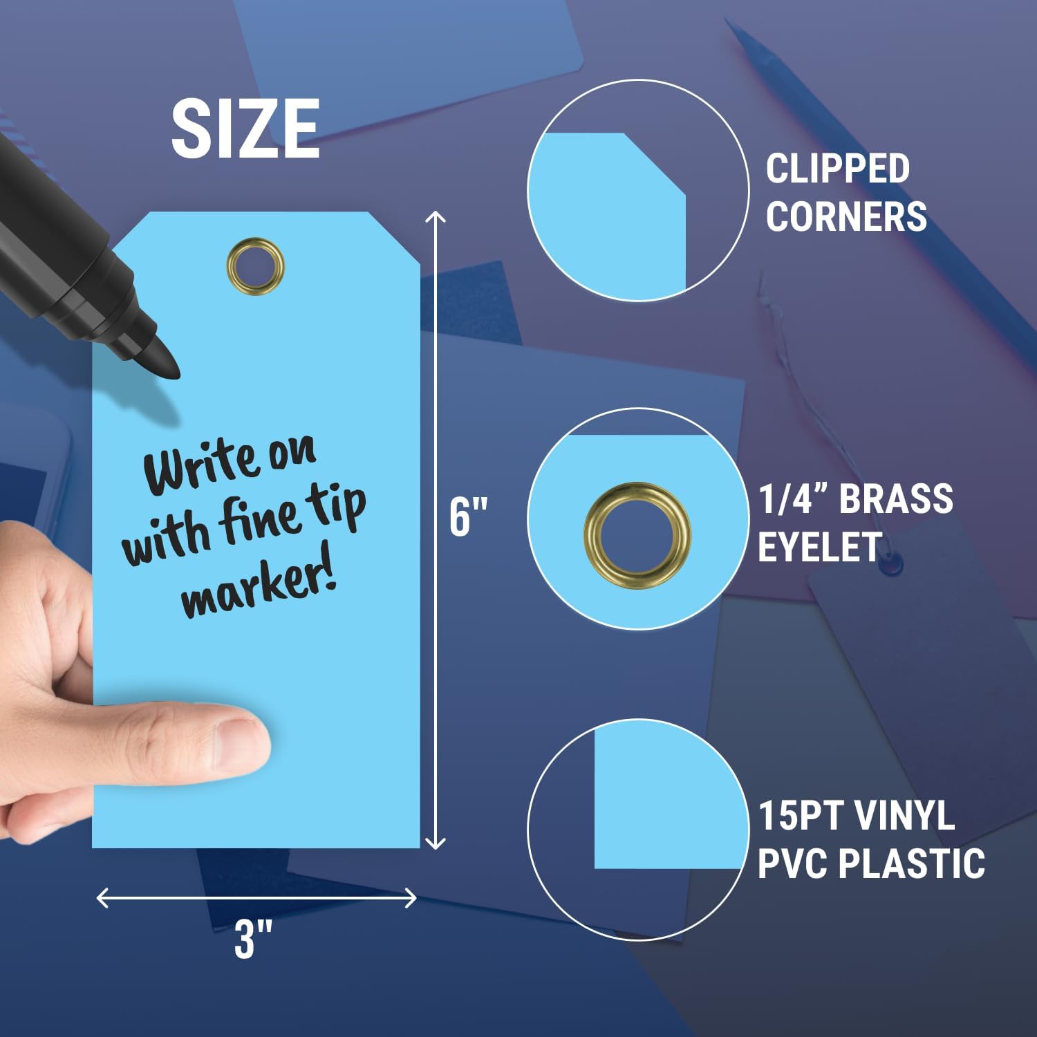- Material : 15pt Vinyl PVC Plastic Tag