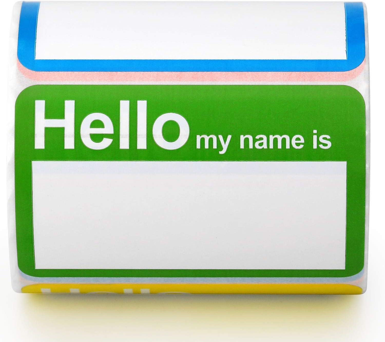 - PACKAGE INCLUDE: 1 roll of Methdic name tags stickers - Hello my name is labels 400 stickers,size: 3.5" x2.25" (89x57mm), assorted colors: red, green, blue, yellow and purple
