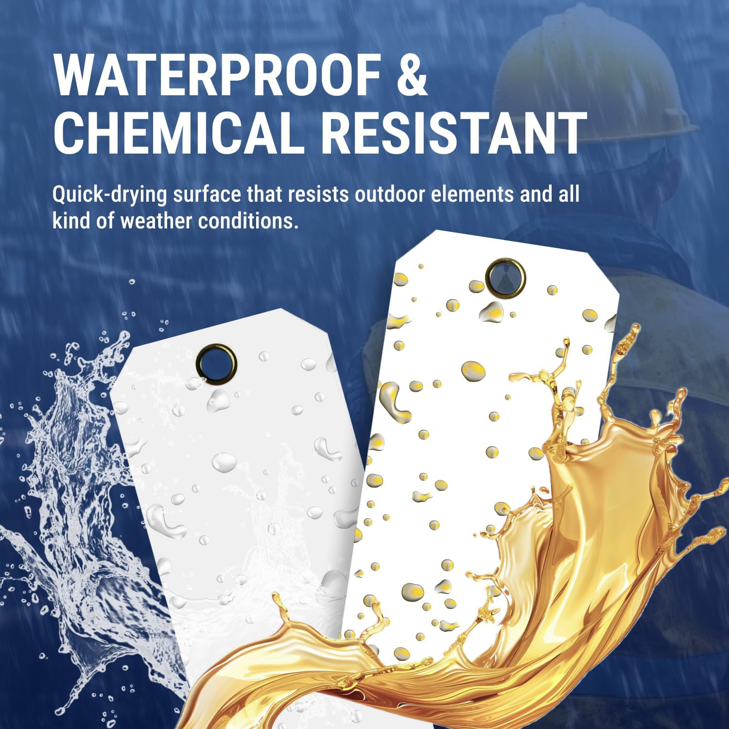 - HEAVY DUTY WATERPROOF TAGS: These vinyl tags are made with 15 pt. heavy duty vinyl that is durable, tear-proof, oil-proof, and weatherproof. This ensures that your tags will last longer than any others.