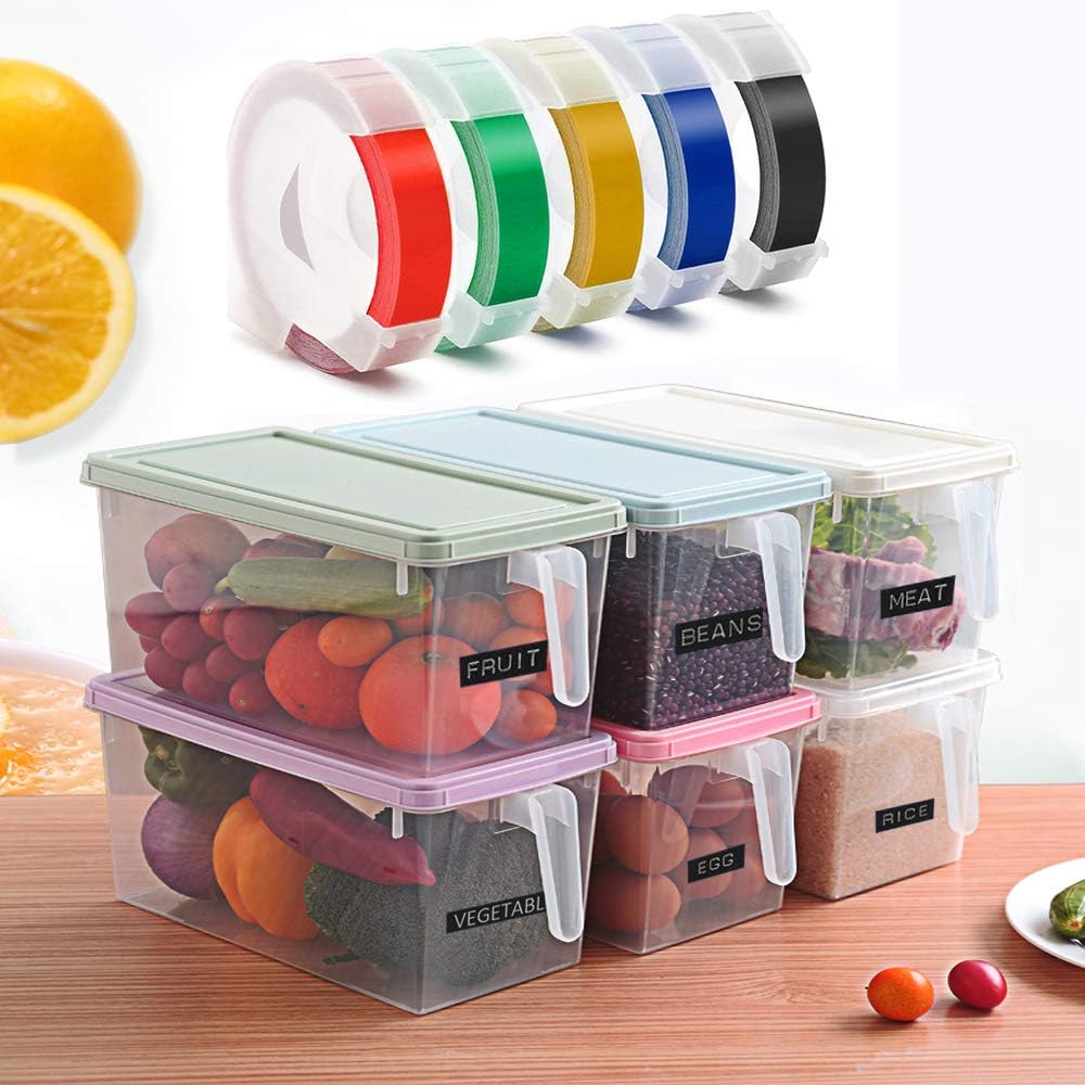 Embossing Label Tape Compatible with Dymo Label Maker,3/8 Inch 3D Plastic Labels Replacement for Dymo Organizer Xpress 12965 DYM 12966 Office Mate II (White on Black/Red/Blue/Yellow/Green)