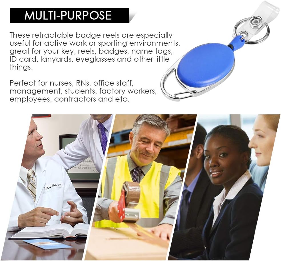 - ※Wide application- These retractable badge reels can be used for active work or sporting environments, great for your badges, reels, name tags, ID cards, keys, lanyards, eyeglasses and other little things. Perfect for nurses, RNs, office staff, management, students, factory workers, employees, contractors and etc.