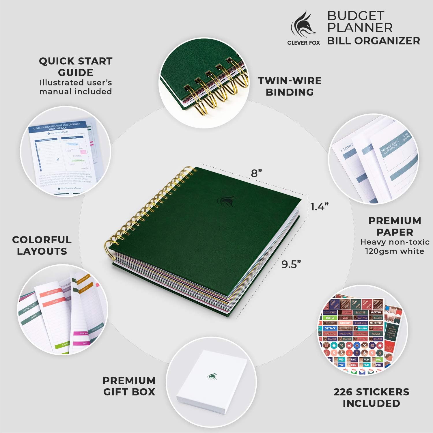 Clever Fox Budget Planner & Monthly Bill Organizer With Pockets. Expense Tracker, Budgeting Journal & Financial Book. Large, 8x9.5" (Dark Green)
