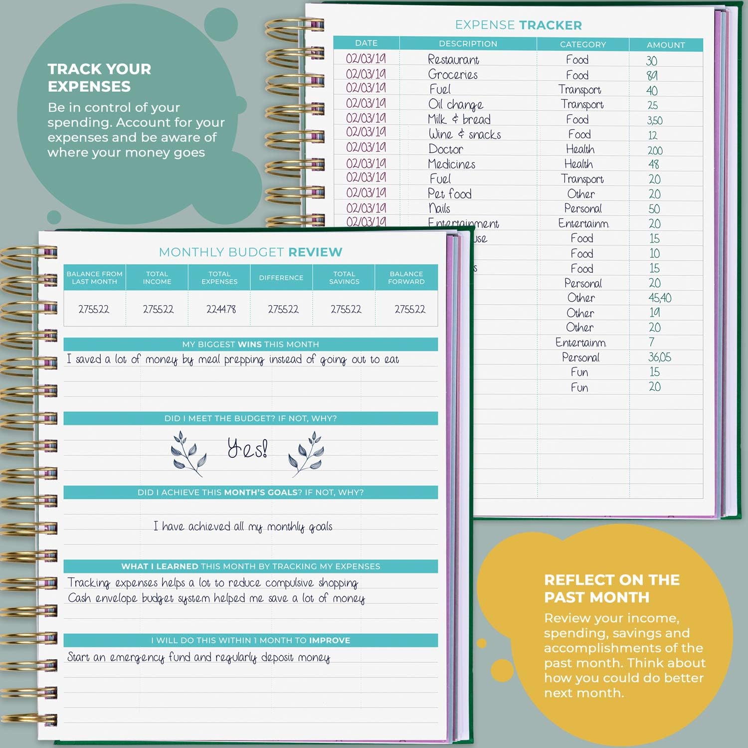 - MAKE A BUDGET, MONITOR EXPENSES & STORE BILLS: Every month, plan your spending, track daily expleses, and keep your financial papers organized with 12 laminated bill pockets. At the end of the month, review your performance and consider how to improve.