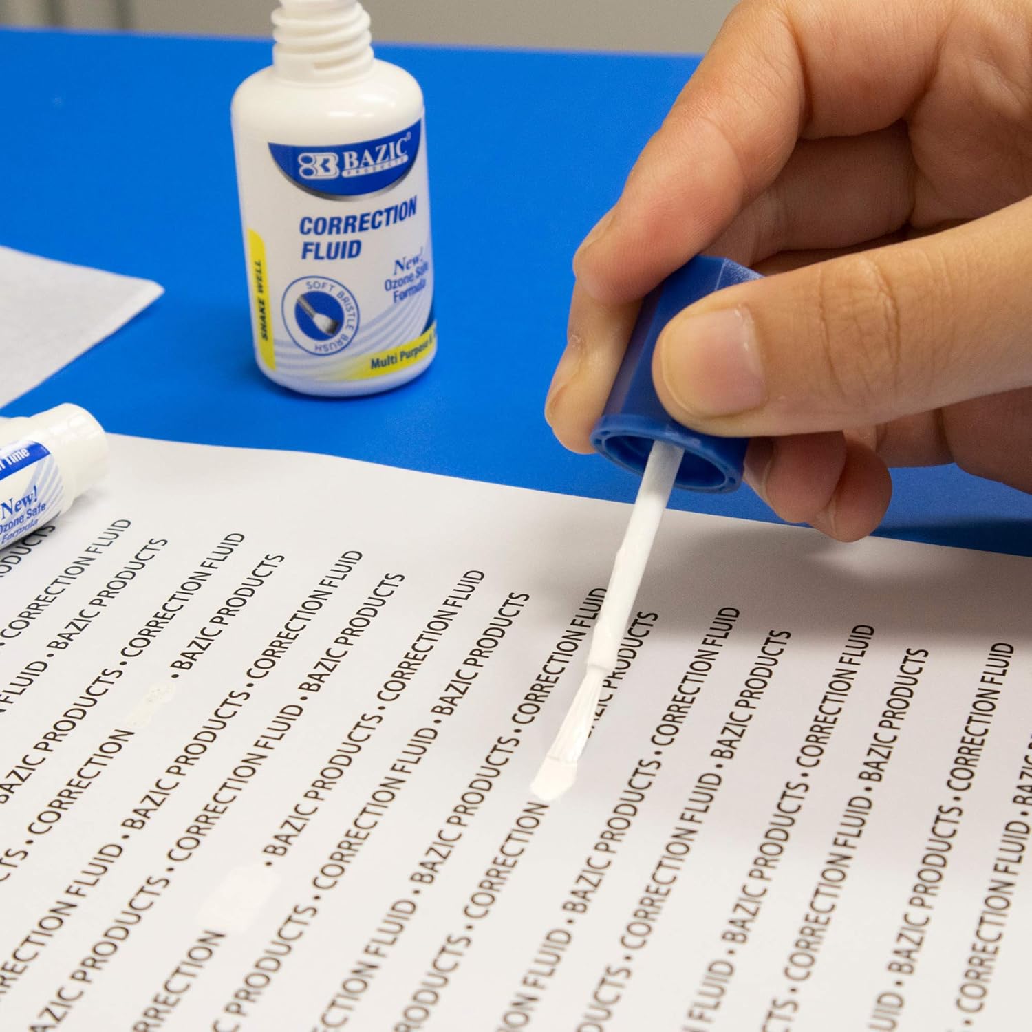 BAZIC Correction Fluid (0.7 oz / 20 ml), Soft Bristle Brush Applicator, Instant Corrections Pen White Out Wipe Out Liquid (2/Pack), 24-Packs