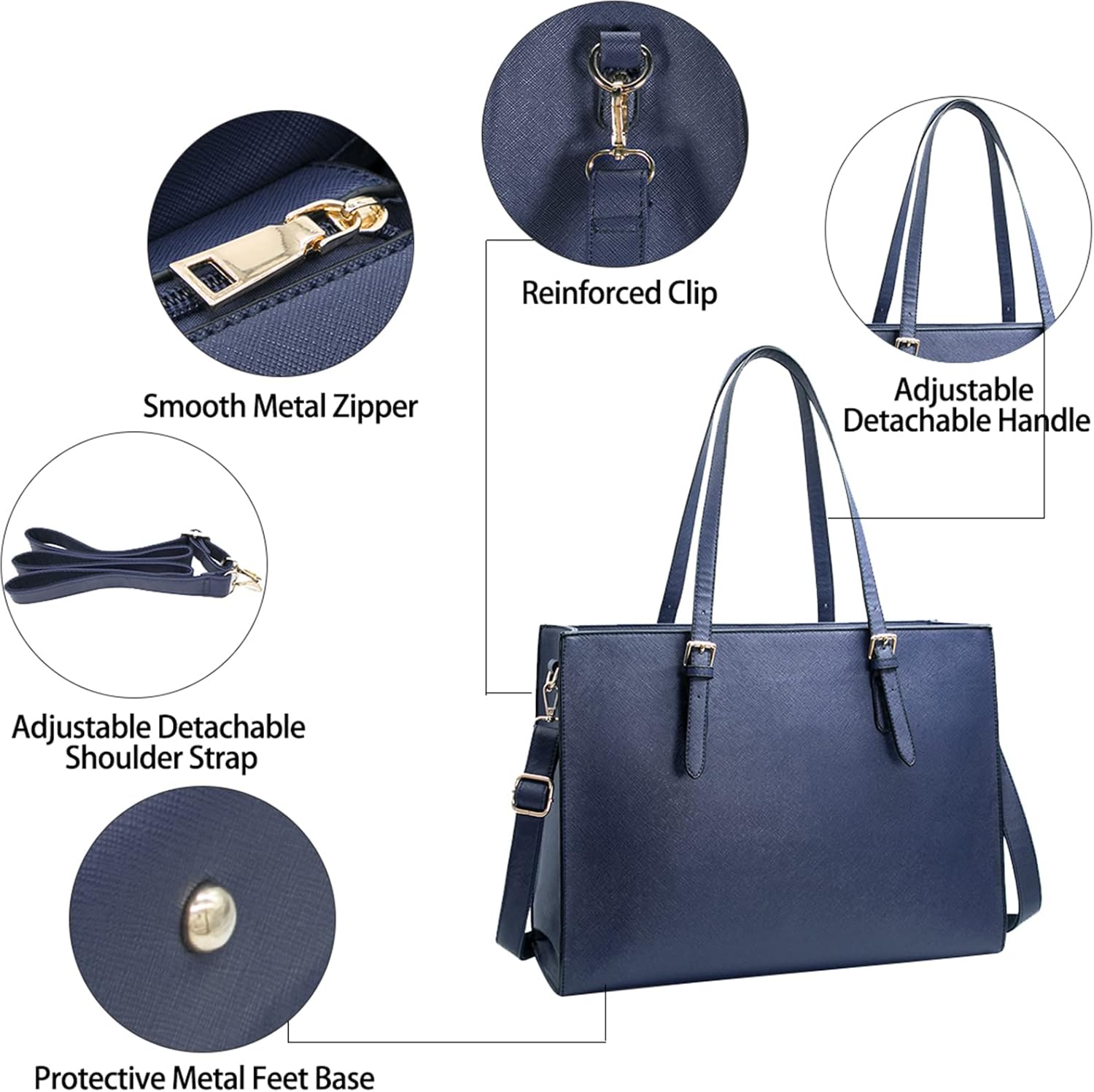 Laptop Bag for Women Waterproof Lightweight Leather 15.6 Inch Computer Tote Bag Business Office Briefcase Large Capacity Handbag Shoulder Bag Professional Office Work Bag Blue