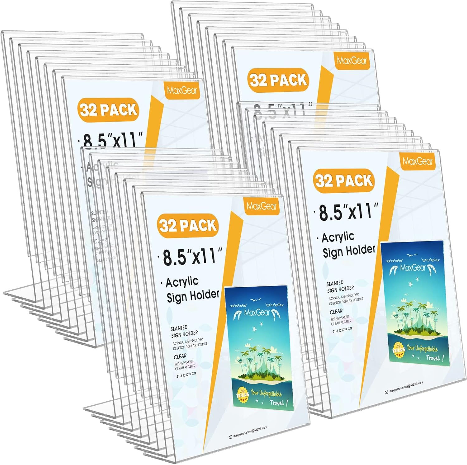MaxGear Acrylic Sign Holder 8.5 x 11 Inches , Clear Sign Holders Plastic Display Stand Slant Back Countertop Display Picture Frames for Menus, Flyer, Use In Office, Store, 32 Pack