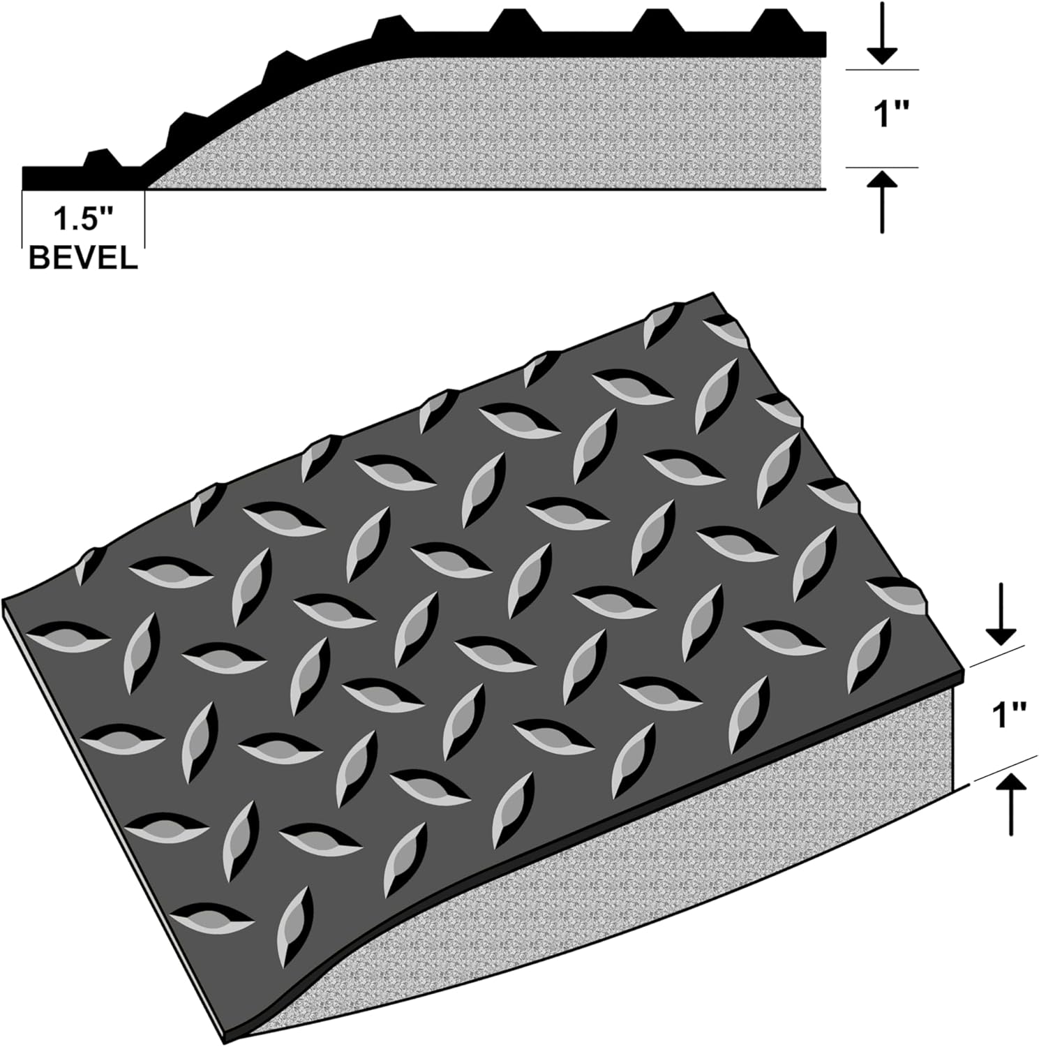 - Edges of sponge base will be beveled to within 1.5” of the top surface to effectively taper the edges of the surface to the floor and create a visibly molded incline around the mat’s perimeter.