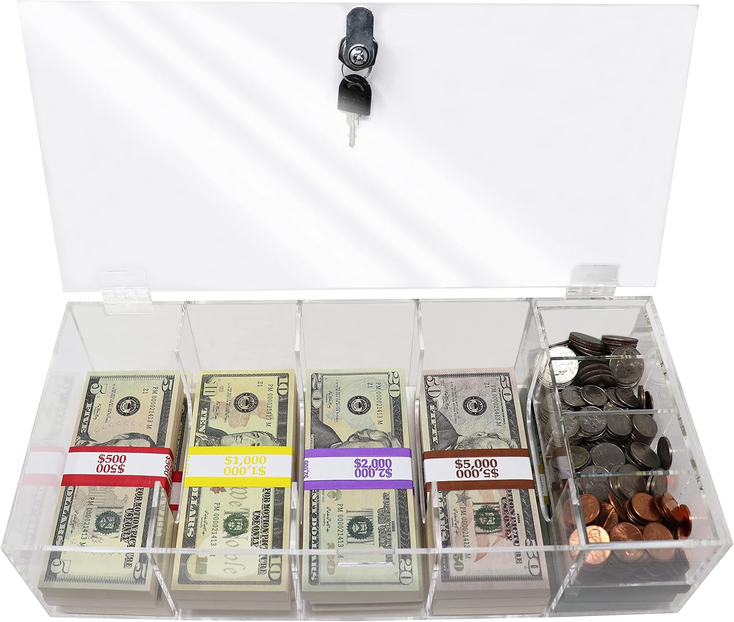 - 5 Compartment Acrylic Currency Tray with Locking Cover