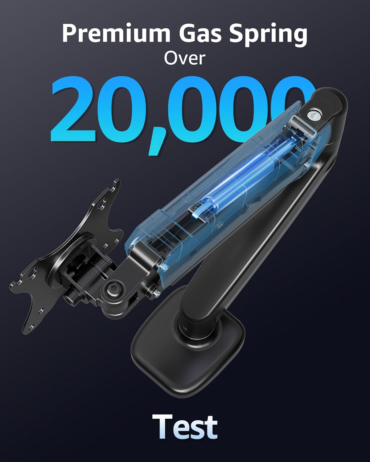 - Free Up Your Desk Space: Heavy-duty monitor arm with built-in cable control professionally helping to hide wires. The single monitor stand releases more than 80% desktop space to place office accessories compared to a monitor holder with a large base while creating a more comfortable work environment. More desk space, better workflow!