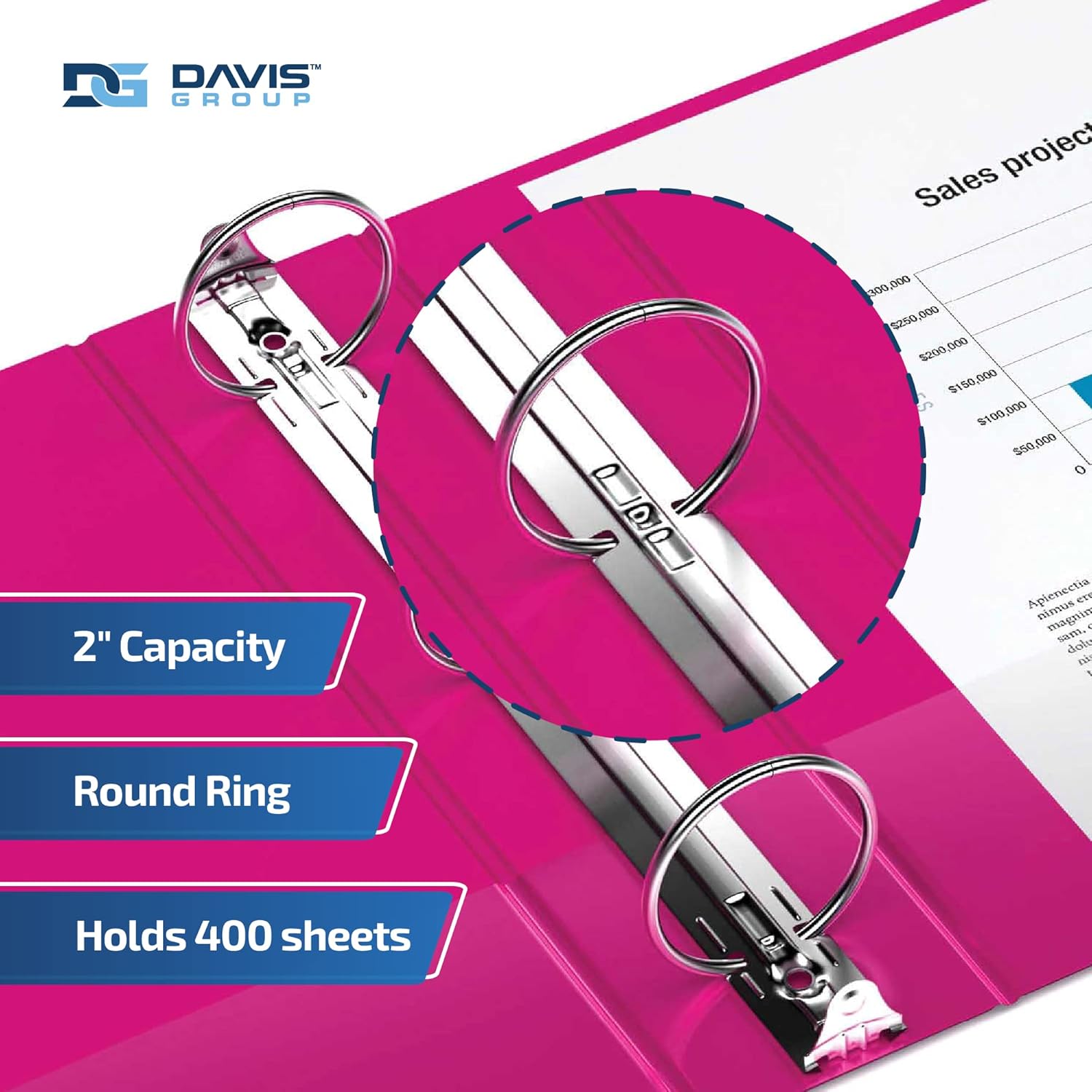 Easyview Premium 3-Ring Binders with Clear-View Covers and Round Rings, Binders for School or Office, 2 Inch, Pack of 6, Pink