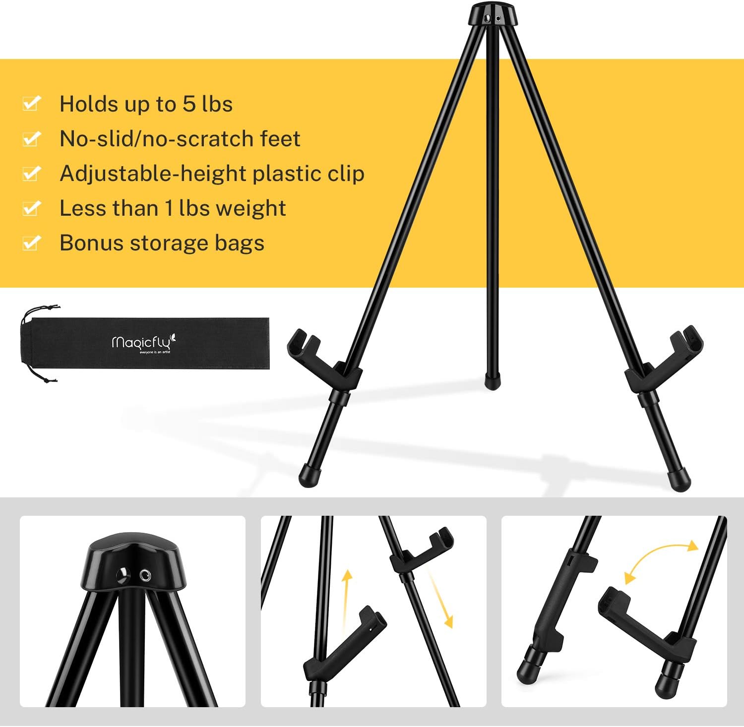 Magicfly 6 Pack Tabletop Easel, Black Steel Table Top Easels for Display, Adjustable & Portable Tripod Easel with 6 Storage Bags, for Signs, Posters, Holds 5 lbs