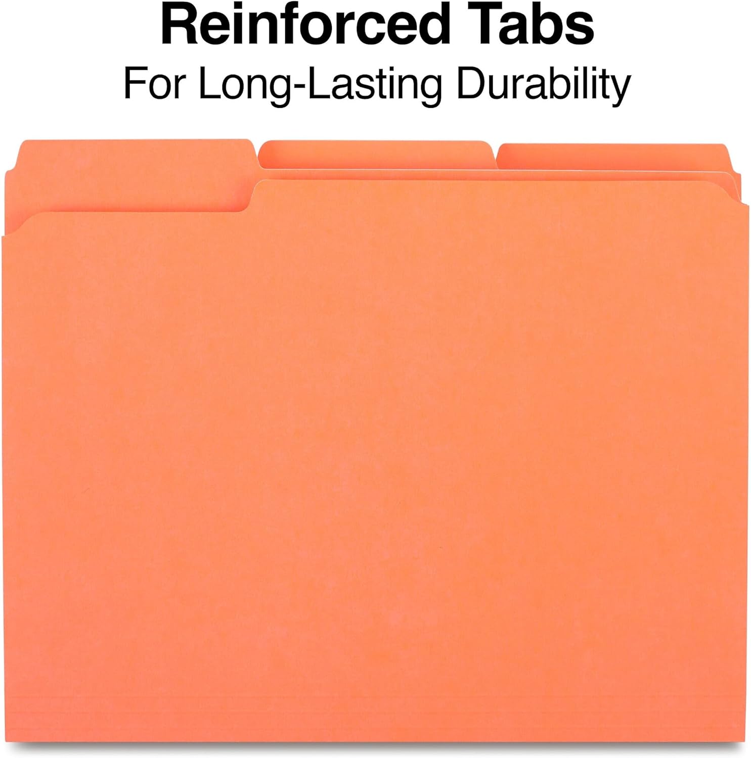 Staples 508929 Colored File Folders w/Reinforced Tabs Letter 3 Tab Orange 100/BX