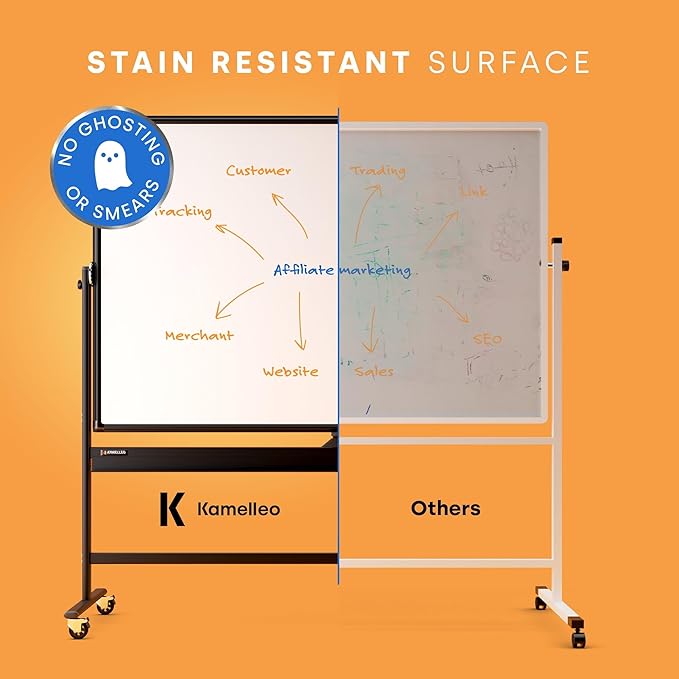 - Built to Last: Whether used in the office, classroom, or home, Kamelleo’s mobile dry-erase whiteboards are designed to hold up over years of frequent use. While other whiteboards will stain or break due to poor construction, our dry-erase whiteboards are known for their durability and reliability when you need it most!