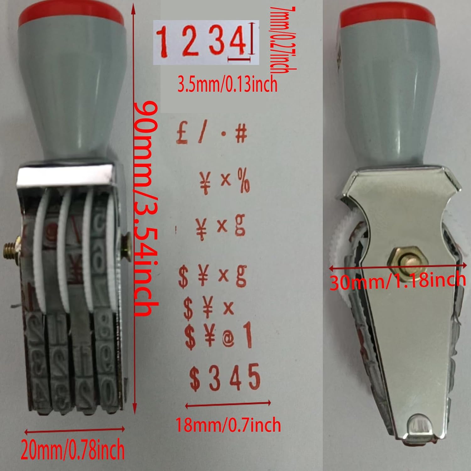Business Stamps, Adjustable Rubber Stamp - Customizable 0-9 Numbers & Symbols for Packaging, Office, Labels (4-Digits)