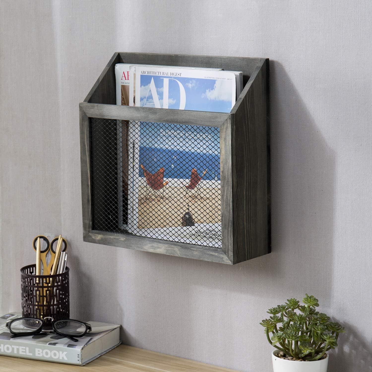 MyGift Rustic Magazine Holder Vintage Gray Wood and Chicken Wire Design Wall Mounted/Tabletop Mail Sorter, Farmhouse Home, Bathroom, Office Magazine Rack