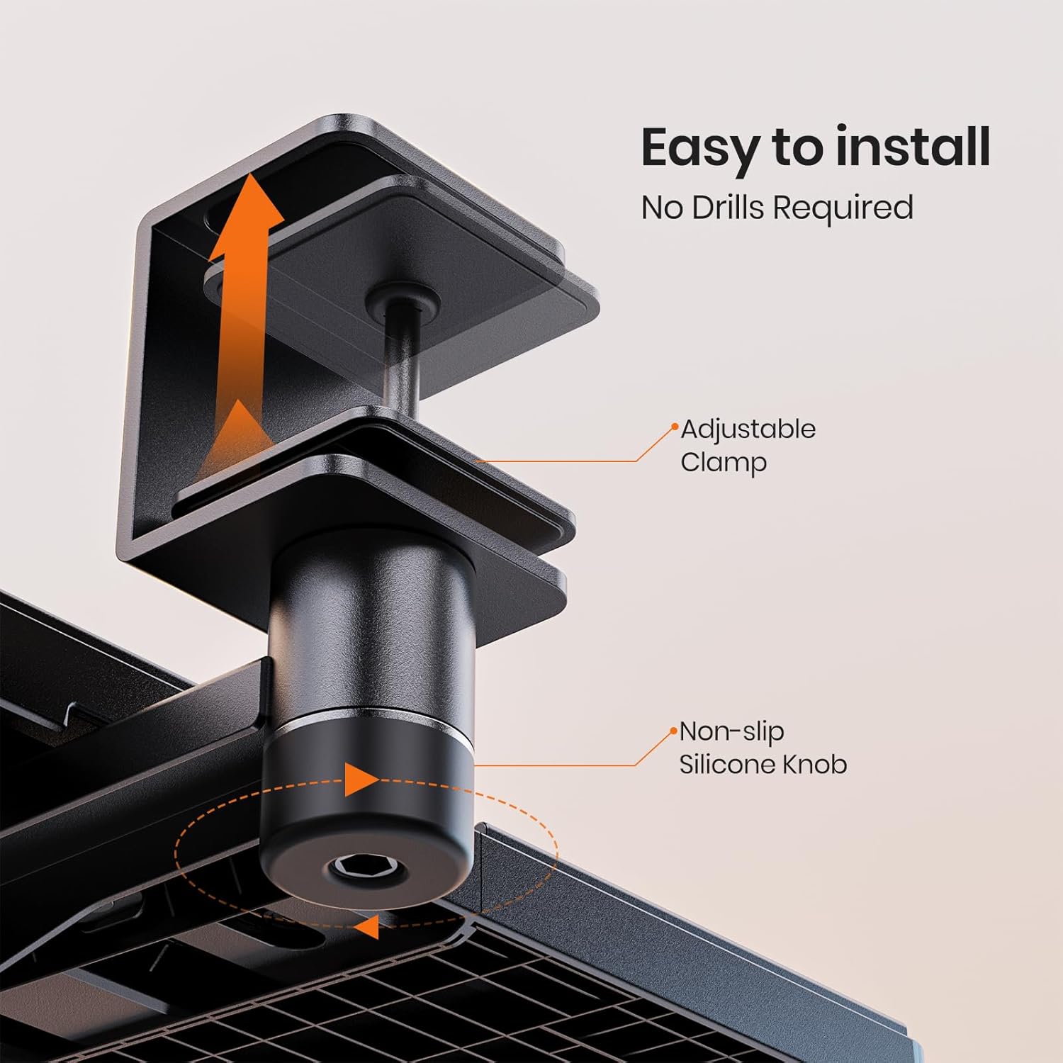 - Space-Saving Design - With a c-clamp fixture that attaches to the desk edge, this keyboard tray maximizes valuable desktop space. Its 360° swivel capability allows for easy storage under the desk when not in use, ensuring a tidy and organized workspace.