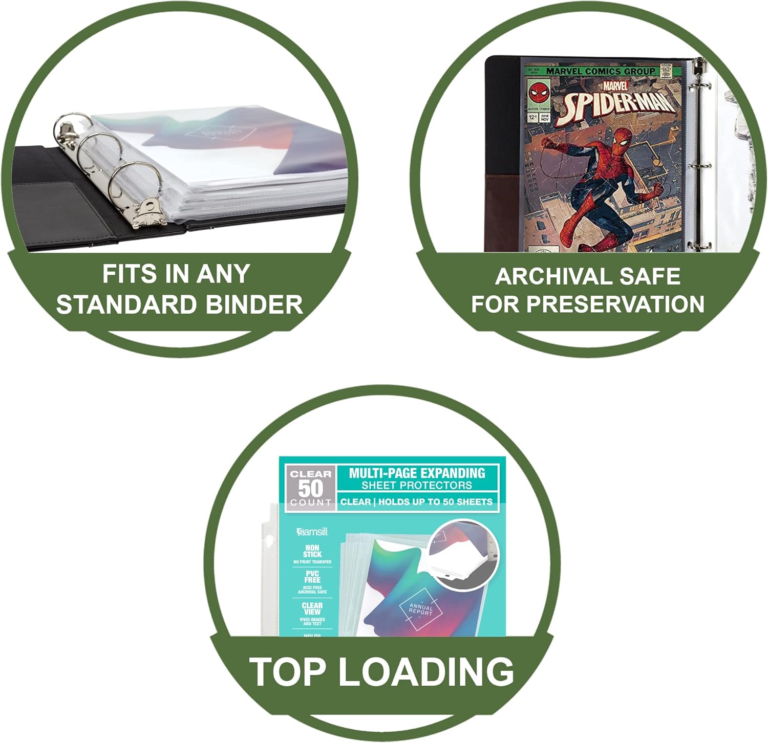 Samsill High Capacity Sheet Protectors, 50 Pack, 8.5x11 Inch Page Protectors for 3 Ring Binder, Heavy Duty, Multi-Page Protector, Holds 50 Sheets, Top Loading, Acid Free