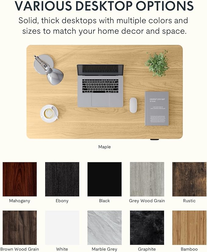 - 1" THICK ONE-PIECE DESKTOP: Crafted from FSC-Certified wood, this seamless desktop offers a completely smooth surface that elevates your workspace. Its one-piece design not only enhances aesthetics but also delivers a sturdier and more stable structure compared to spliced tabletops.