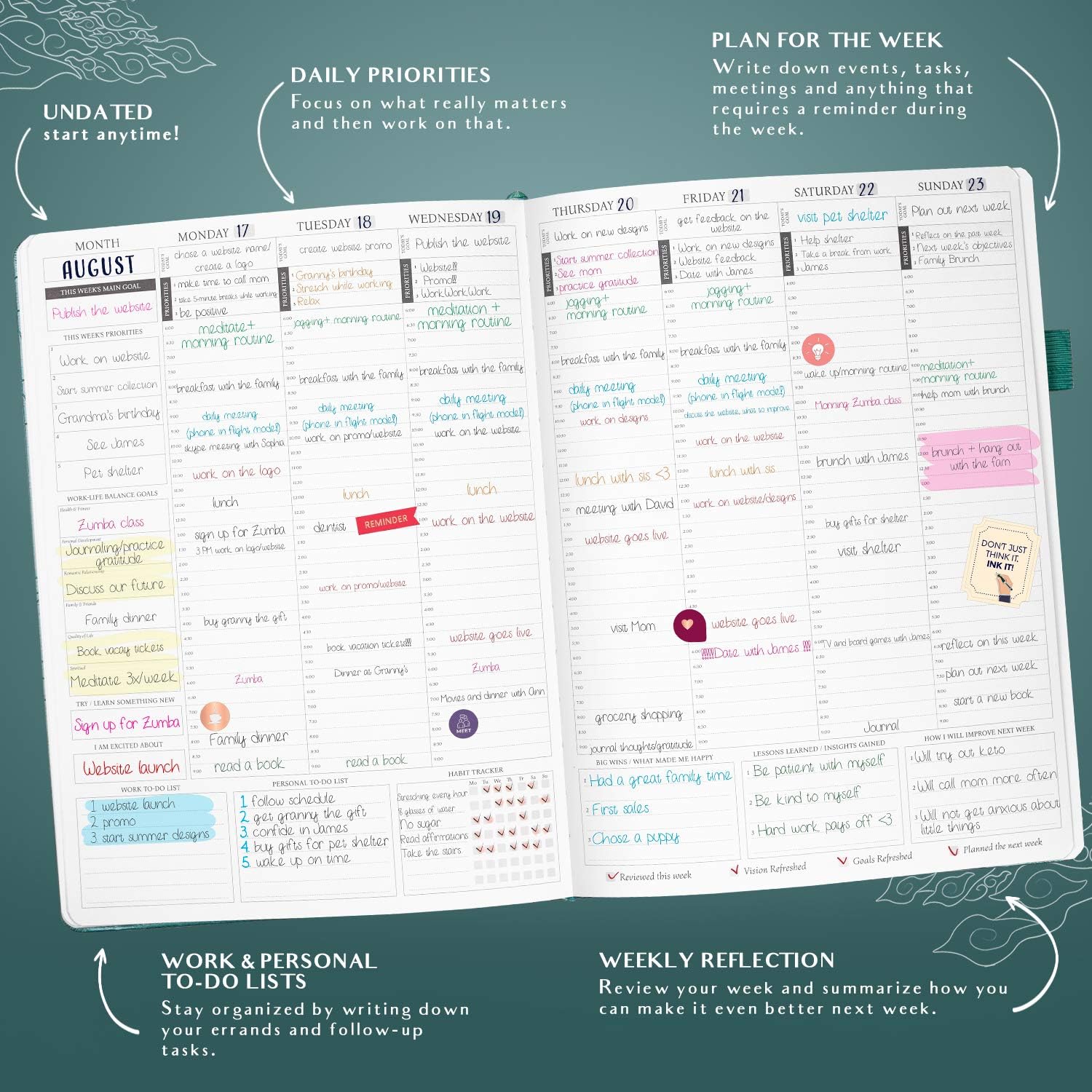 - THE ULTIMATE UNDATED, LARGE-FORMAT PLANNER – This large-format, undated planner combines effective planning tools and goal-setting frameworks to help you stay focused and productive throughout the year.