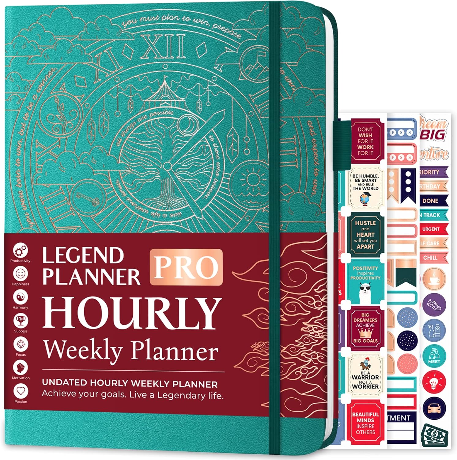 Legend Planner PRO Hourly Schedule - Weekly & Daily Organizer with Time Slots. Appointment Book Journal for Work & Personal, A4 (Viridian Green)