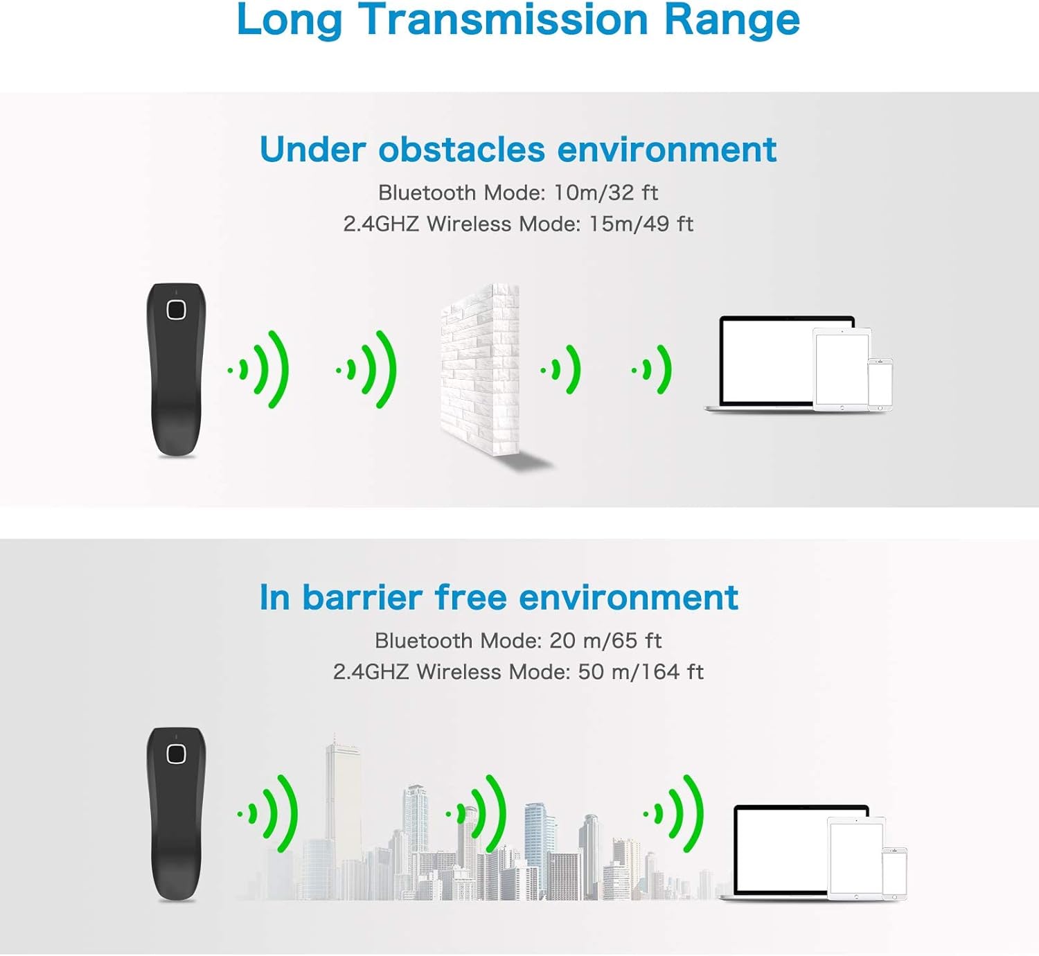 - The Pocket bar code scanner comes with 3-in-1 Connection Design:Compatible with Bluetooth Function; 2.4G Wireless connection receiver; Wired connection. Easily connected with your laptop, PC, mobile phone, tablet, iphone, ipad, POS. Work with Windows XP/7/8/10, Mac OS, Windows Mobile, Android OS, iOS