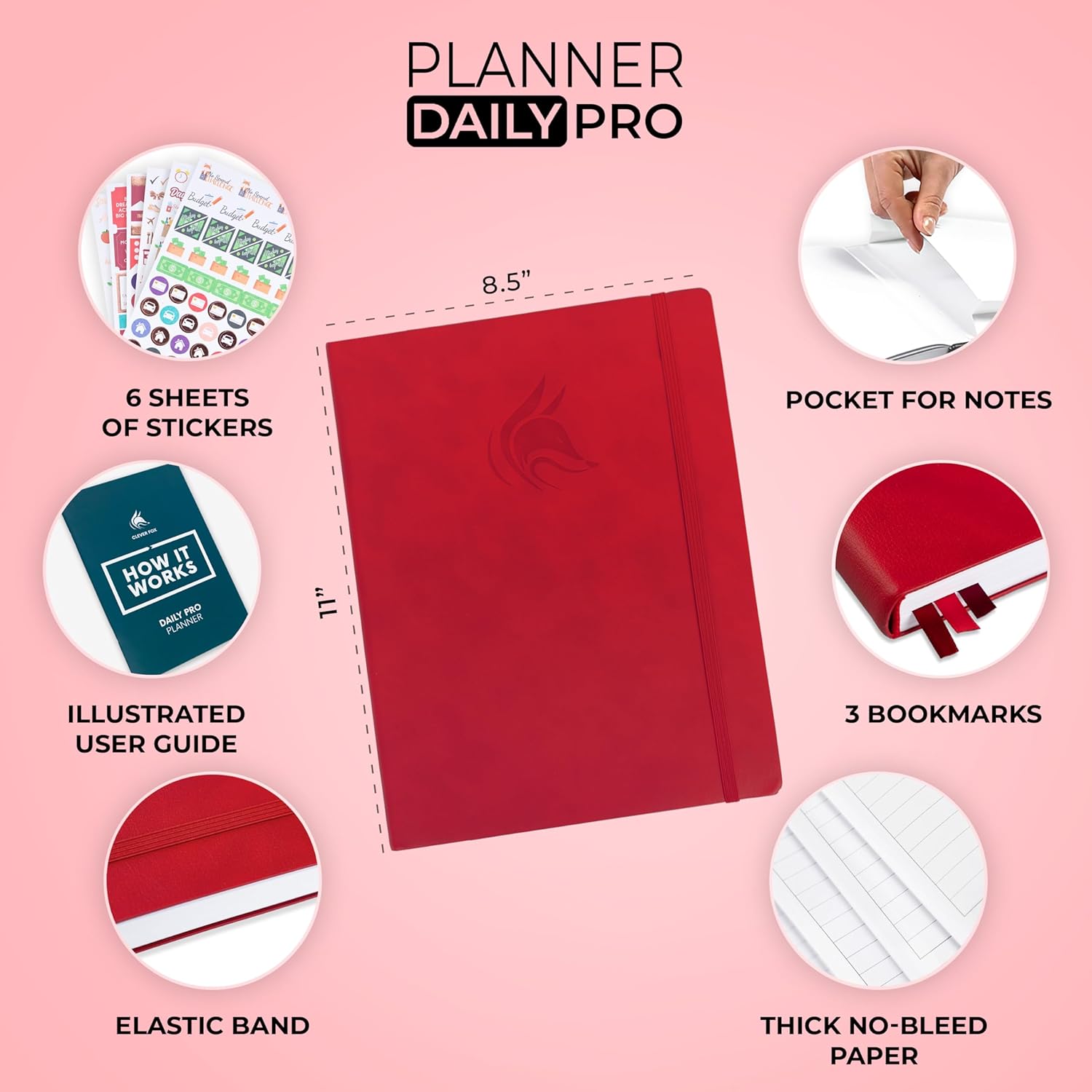 Clever Fox Planner Daily PRO - 8.5 x 11" A4 Size Daily Life Planner and Gratitude Journal to Increase Productivity, Time Management and Hit Your Goals - Undated - Lasts 3 Months (Red)