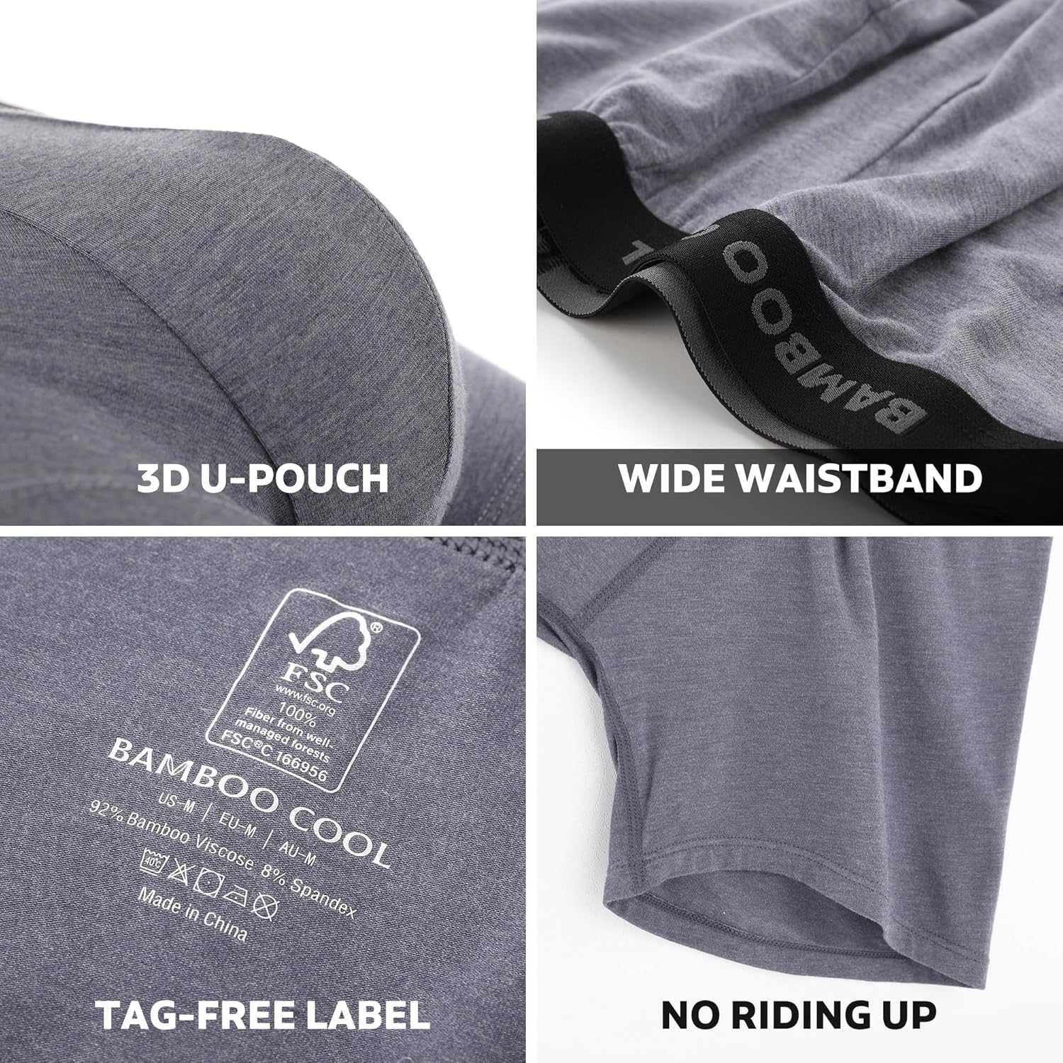• PREMIUM MATERIAL: 92% Viscose Made From Bamboo and 8% Spandex,light and soft texture.It is 30% more breathable than cotton underwear and the average body temperature is 3°lower than cotton ones,bringing a fresh touch to your skin