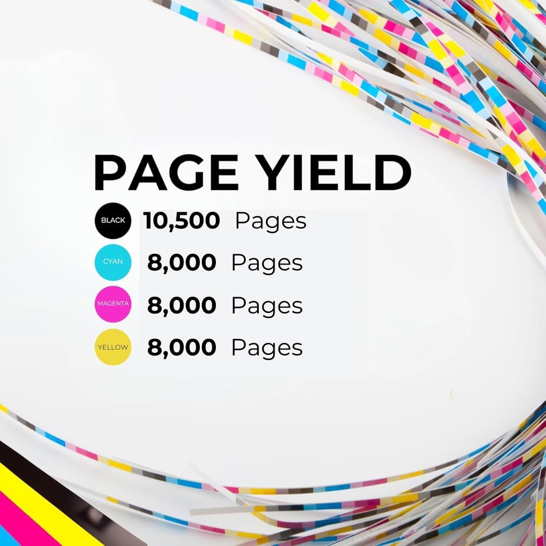 - πππππ ππππ ππππ πππππ: Black prints up to 10,500 pages; Color (Cyan, Magenta, Yellow) up to 8,000 pages each at 5% coverage. Actual yield may vary.