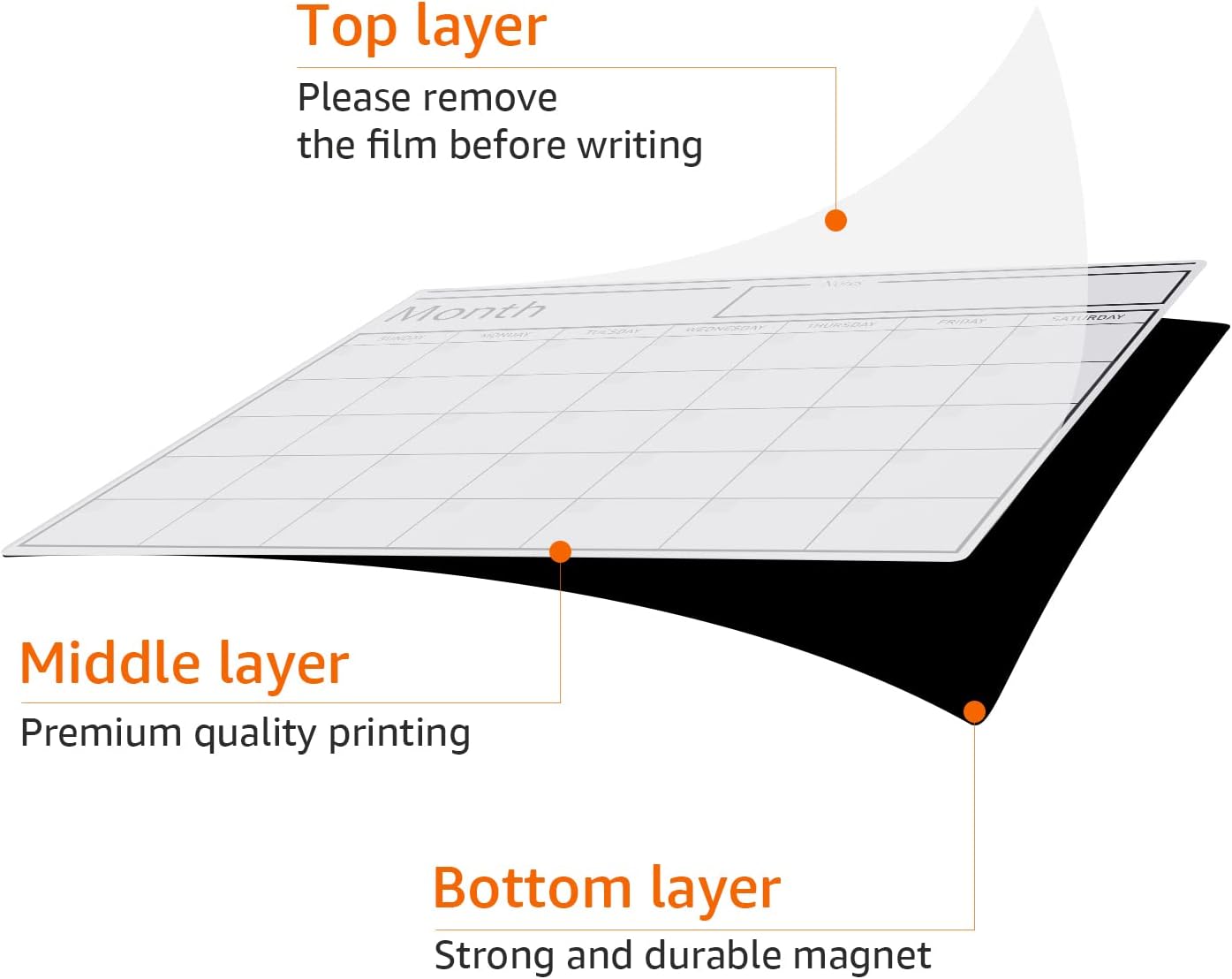 - Magnet-backed white board sheet calendar for date-keeping, scheduling, or organization in an office or at home