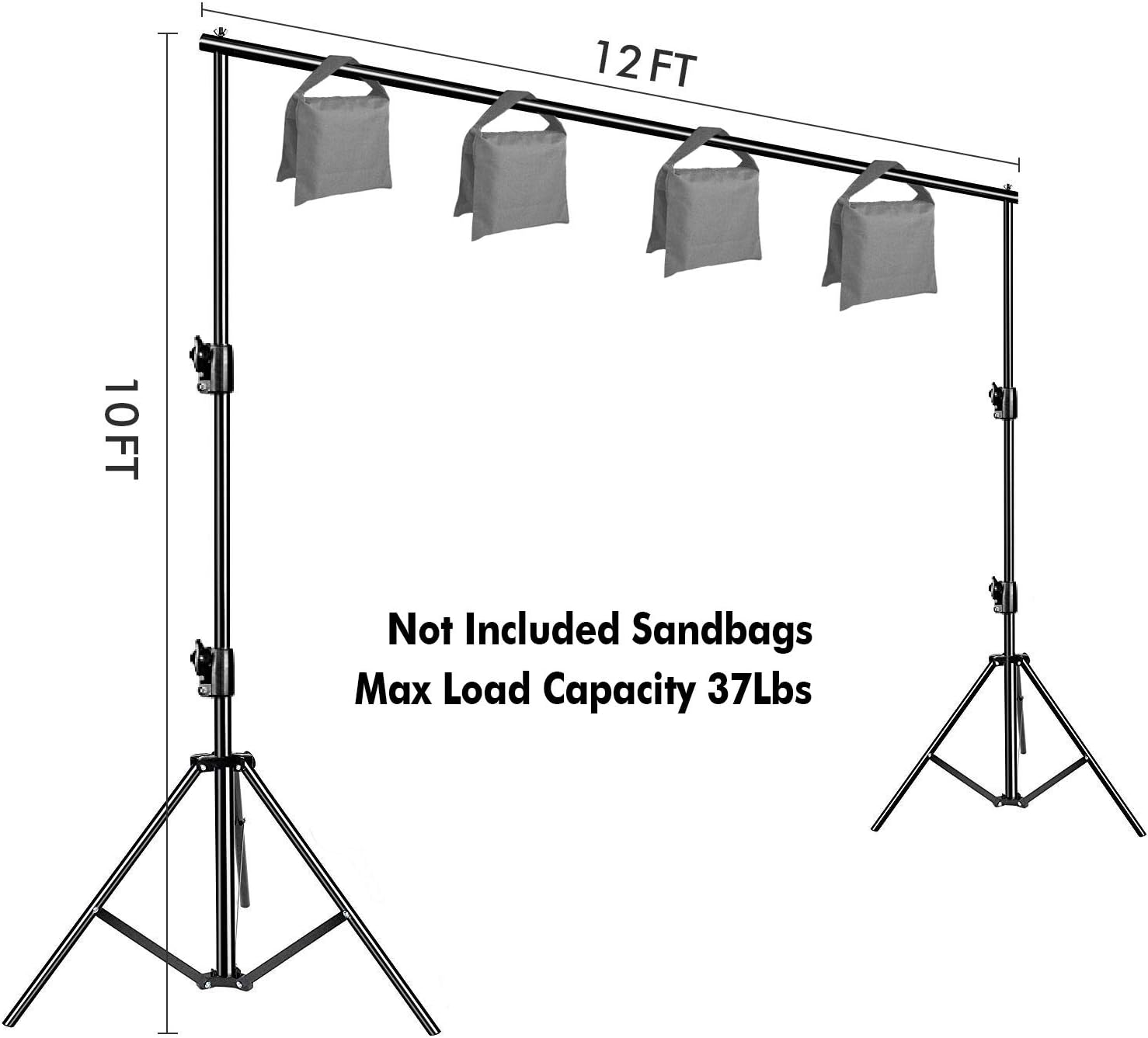 12ft x 10ft Photo Video Studio Heavy Duty Adjustable Photography Muslin Backdrop Stand Background Support System Kit with Carry Bag 4 Spring Clamps