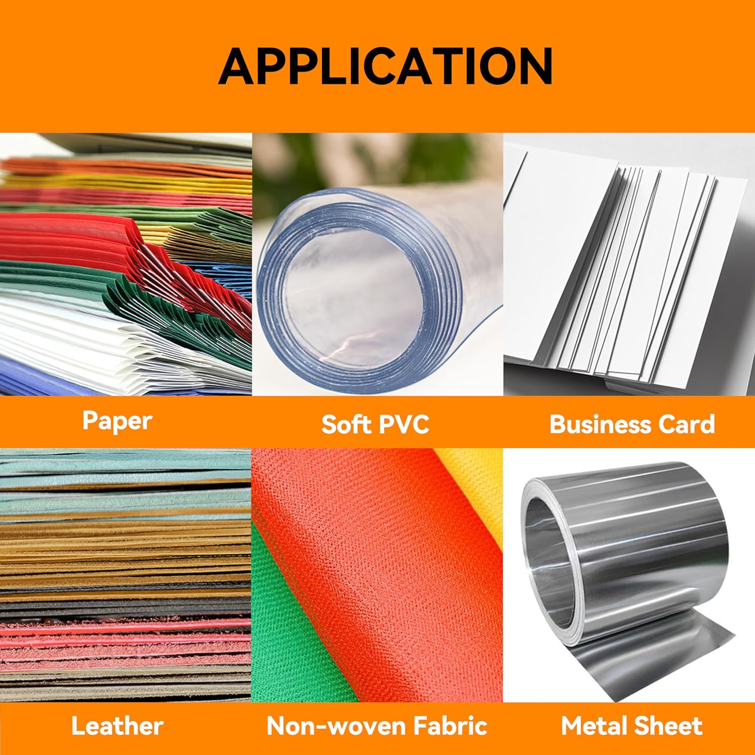 - [Compatible Materials]: Capable of cutting 0.2mm thick iron plate, copper plate, PVC, 12 sheets of 80-gram paper, plastic film, adhesive, bond paper, and photos. Supports A4 paper cutting in both horizontal and vertical directions.