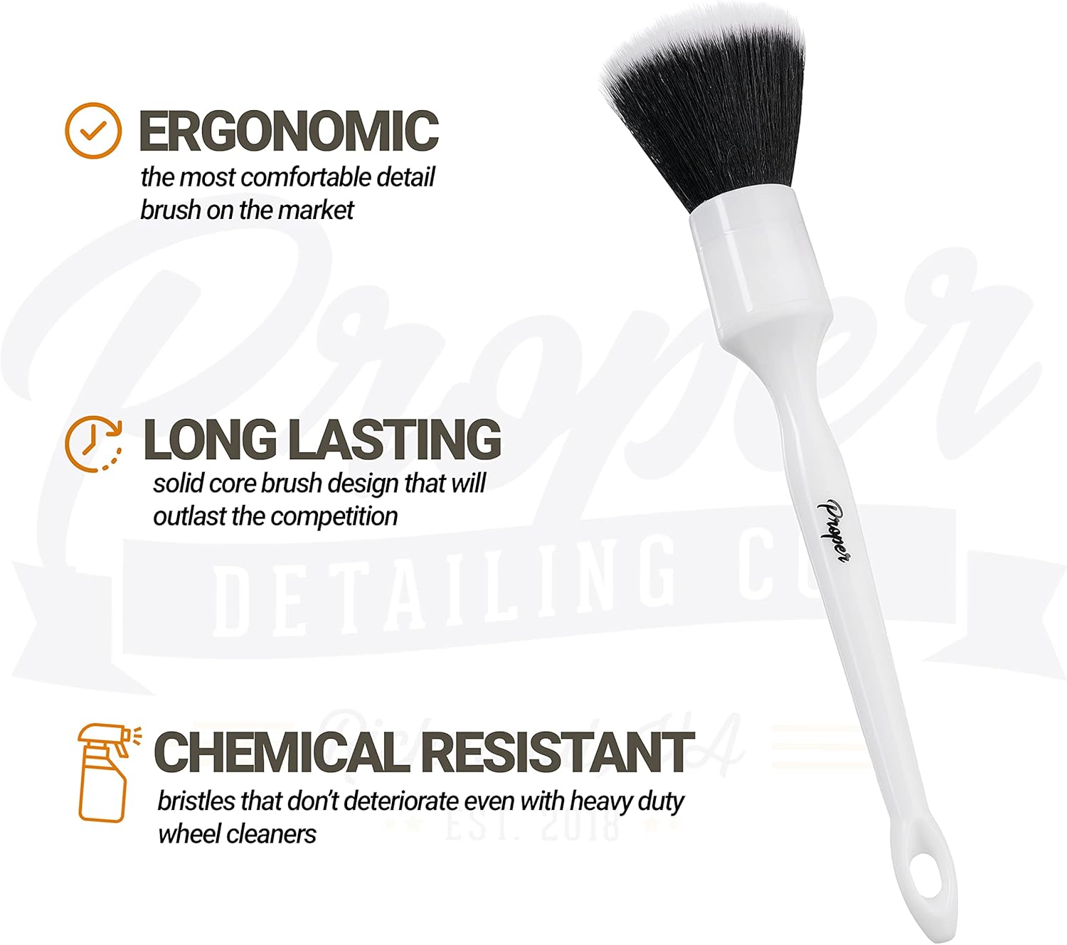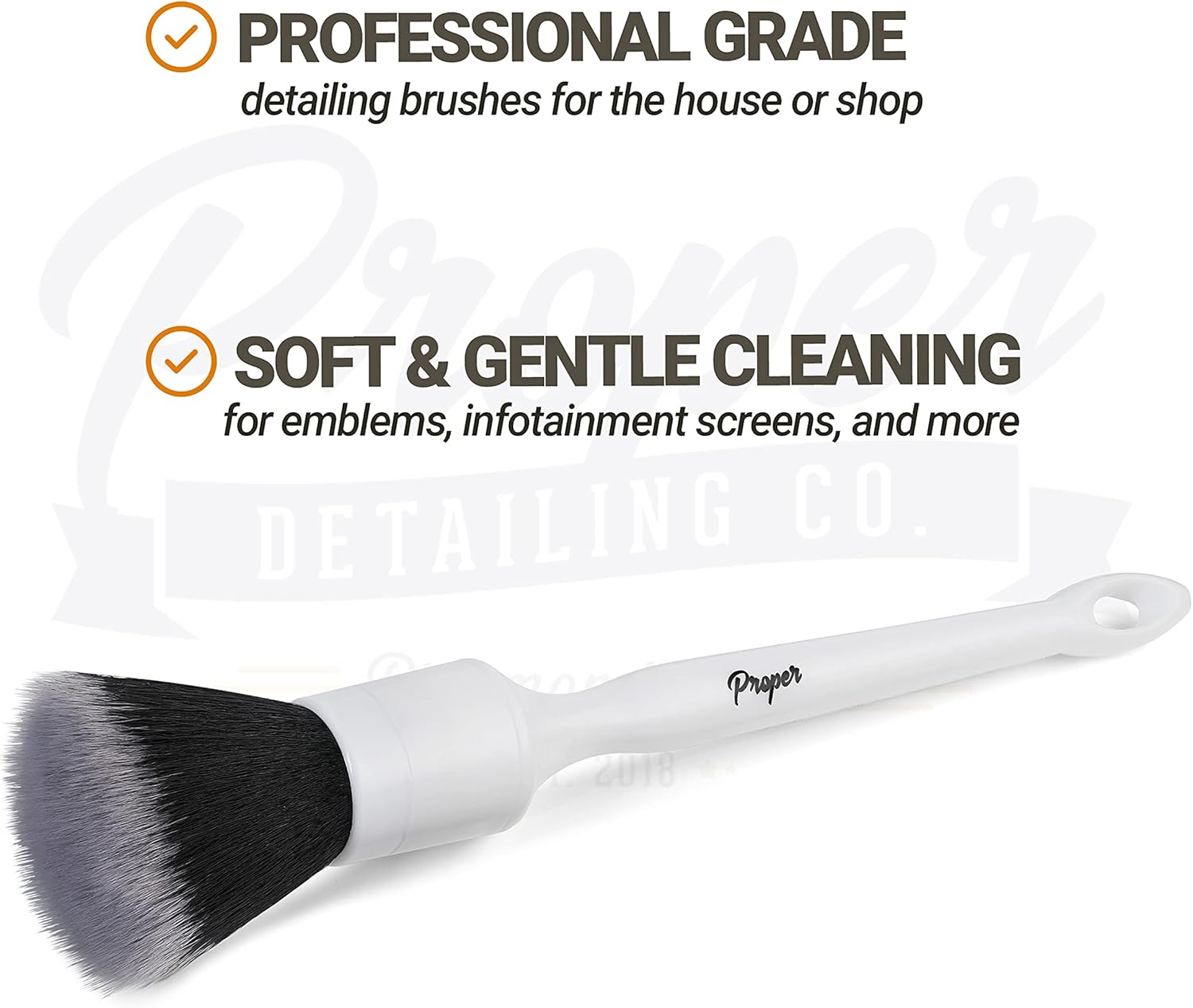 - PROFESSIONAL GRADE - Many professional detailers have used the same set of Proper Detailing Brushes for over ONE year, used daily! Our detail brushes for car detailing are used daily in a professional setting. Whether a hobby detailer or a pro, the Proper Detailing Co. detail brush kit is a perfect choice.