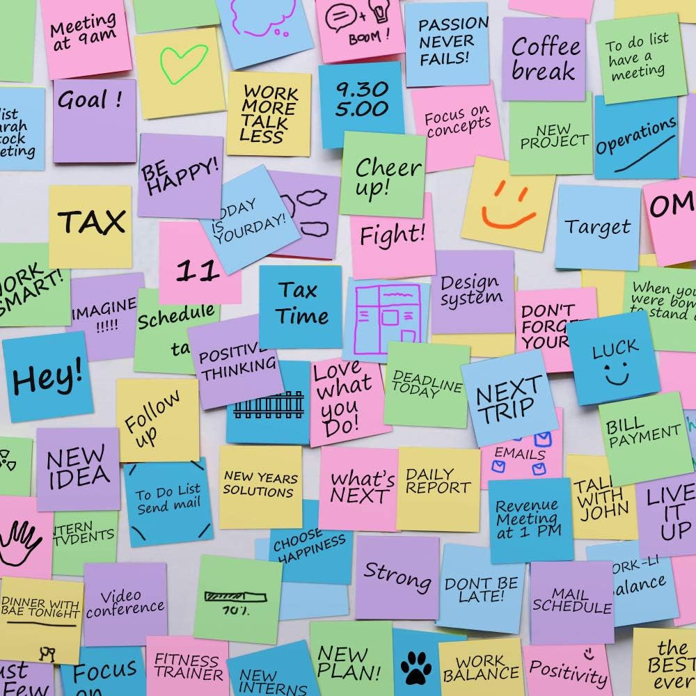 - With plenty of sticky notes, you’ll have enough for a year’s worth of school supplies or office supplies, ideal for keeping track of daily activities