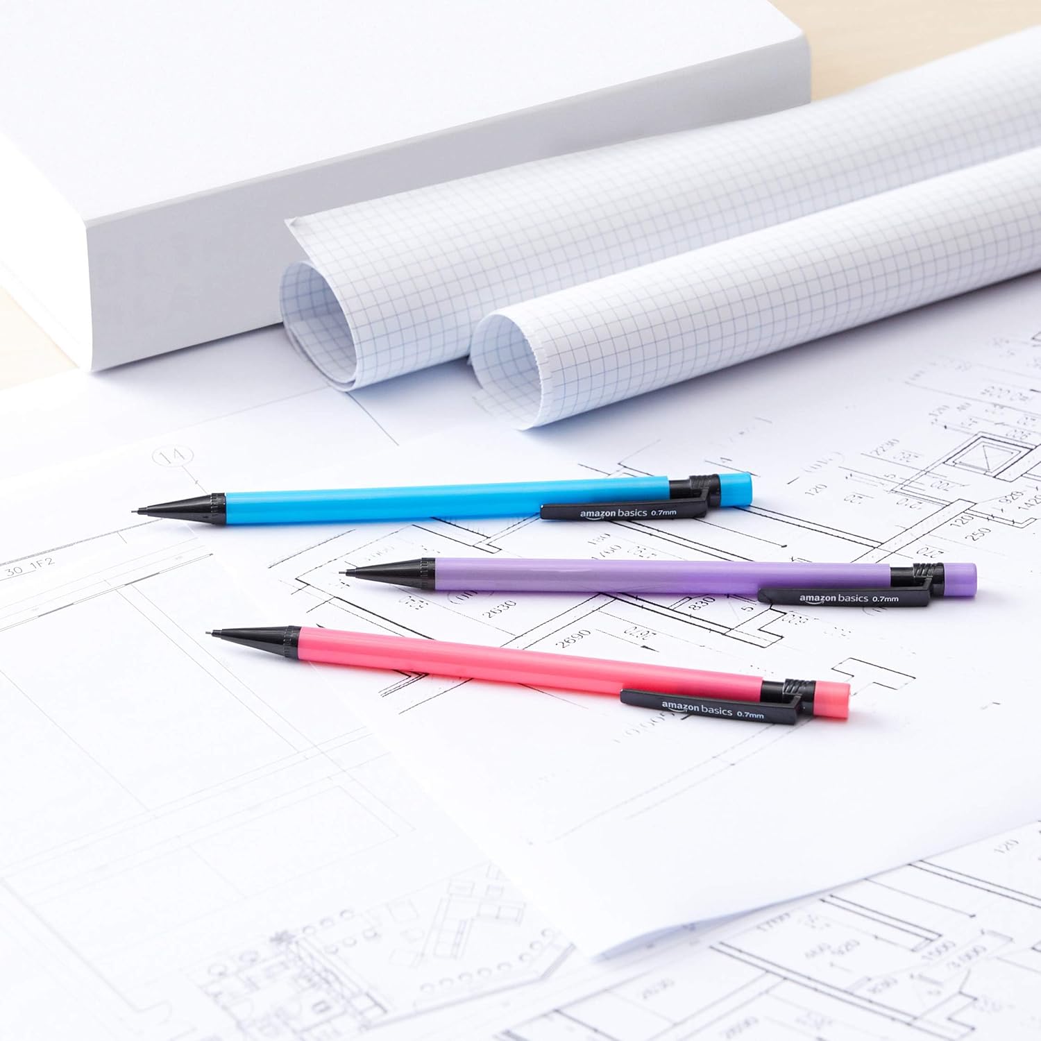 Amazon Basics Mechanical Pencils 0.7mm For Writing, Drawing, Bulk Office and School Supplies, Multicolor, 24-Pack