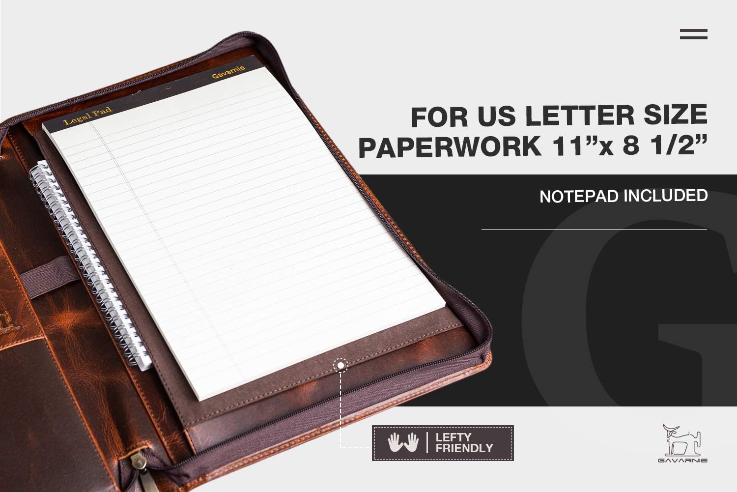 - Gavarnie leather portfolios for men are GREAT Choice for a birthday, anniversary, college graduation, and a new career. This genuine leather portfolio for men comes with a 50-page letter-sized notepad. We are so confident in our men's business leather padfolio that we are including a 30-days return and a one-year FREE replacement warranty. Enjoy the high-end business portfolio now!