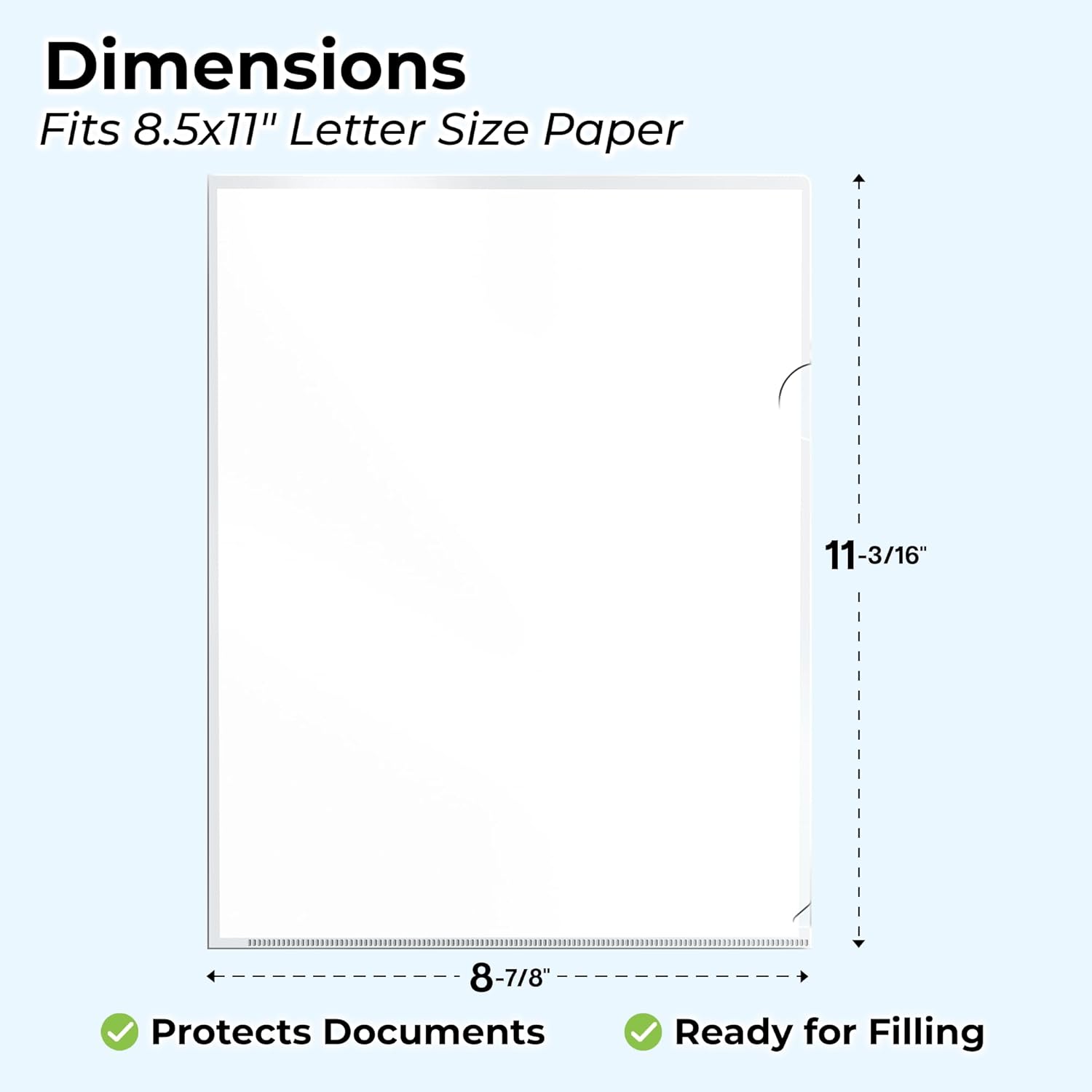 - THUMB NOTCH FOR QUICK ACCESS: Top and side loading "L-Shape" design gives easy access to papers. Each clear document folder holds 30 sheets. File folders fits standard 8.5x11 paper.