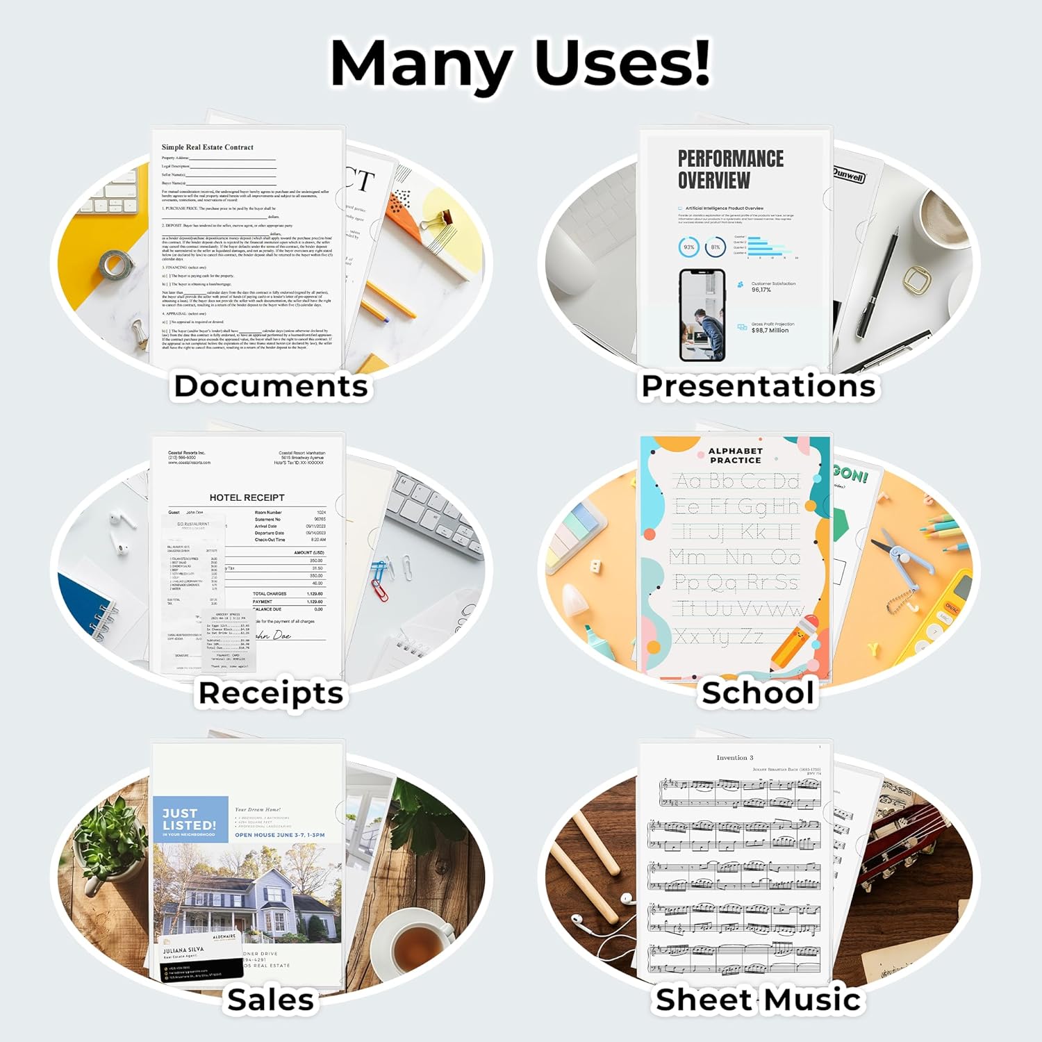 - VERSATILE DOCUMENT SLEEVES: Many uses, Ideal for receipts, presentations, school projects, arts and crafts storage, travel docs. Reusable plastic document sleeve for home, office, business use.