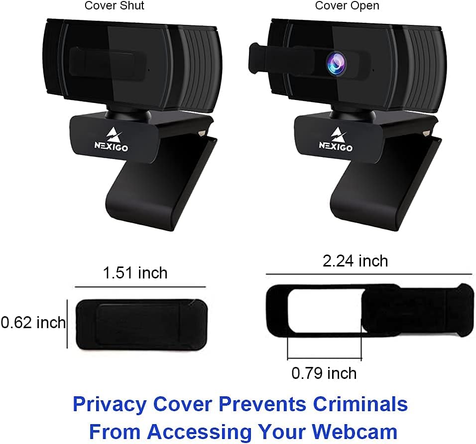 - 【Webcam w/ Privacy Cover】 The privacy cover for the NexiGo N930AF covers the lens when it is not in use. This helps prevent criminals from accessing your webcam without your knowledge. It also helps to protect the lens from dirt and debris to ensure your video remains clear for the life of the camera.
