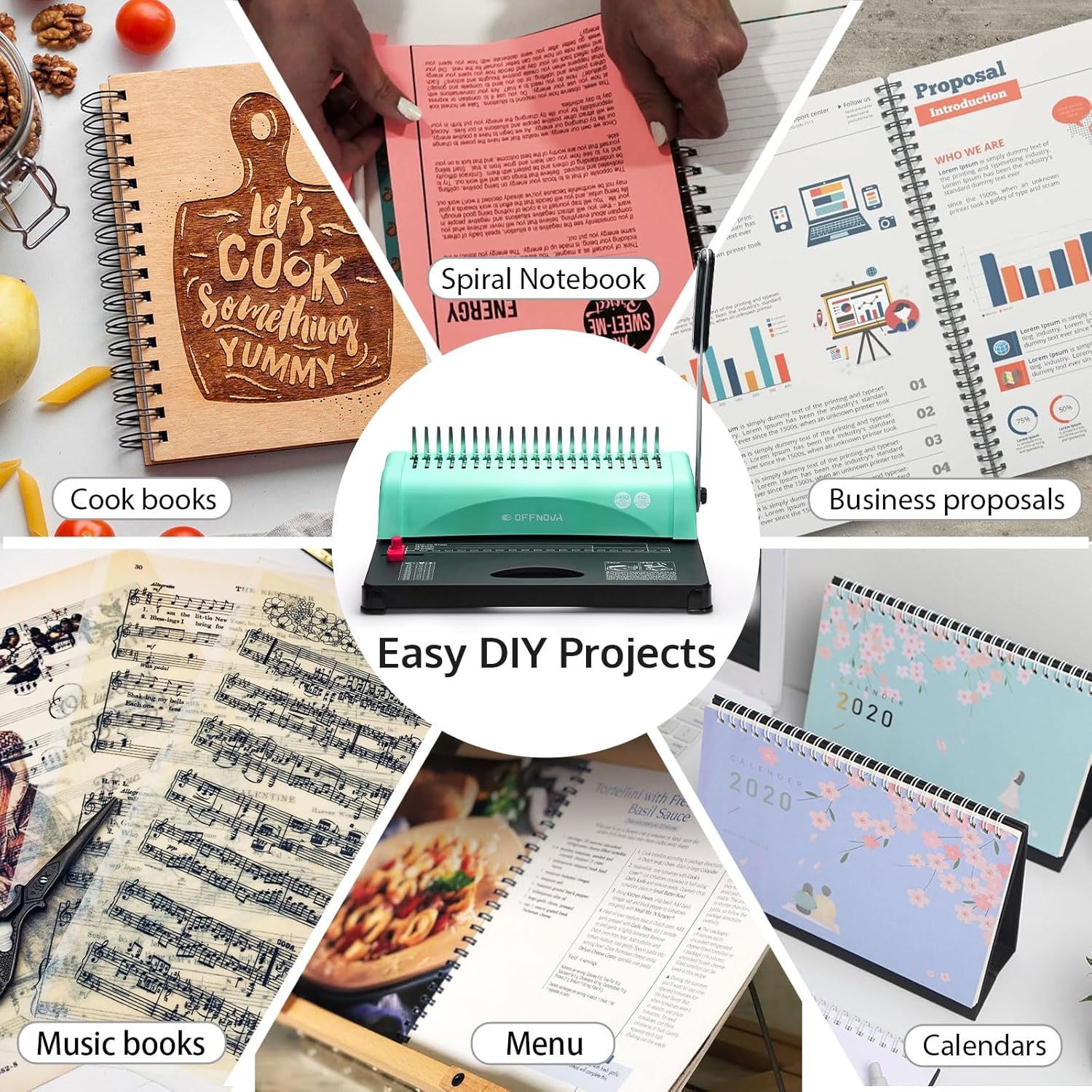 - 【Easy to Operate】Our binding machine is incredibly easy to use with just 2 steps! It features an all-in-one punching and binding system in one machine. Simply align the pages, press down the punching lever, and insert the comb. Be sure to press the punching handle all the way to the bottom without pausing, as stopping midway may cause paper jams.