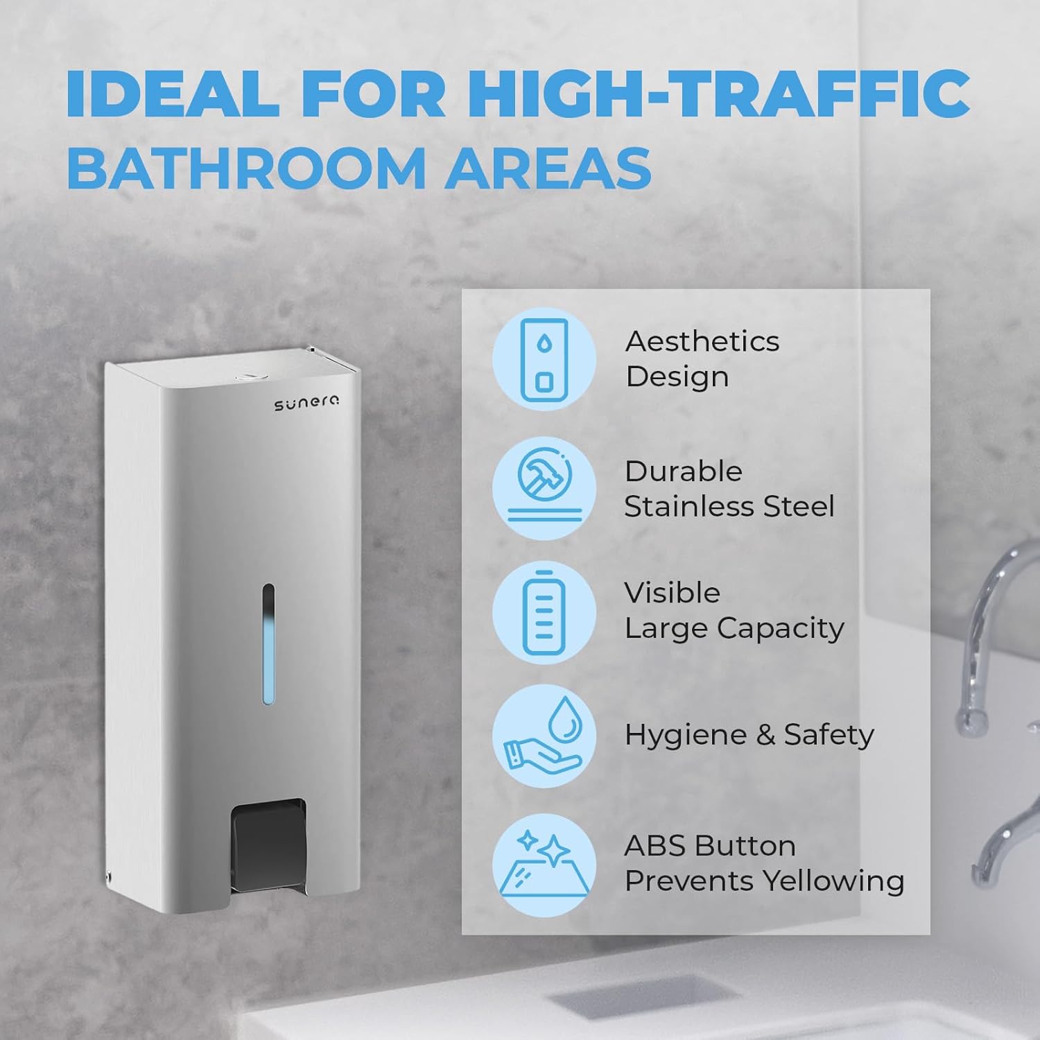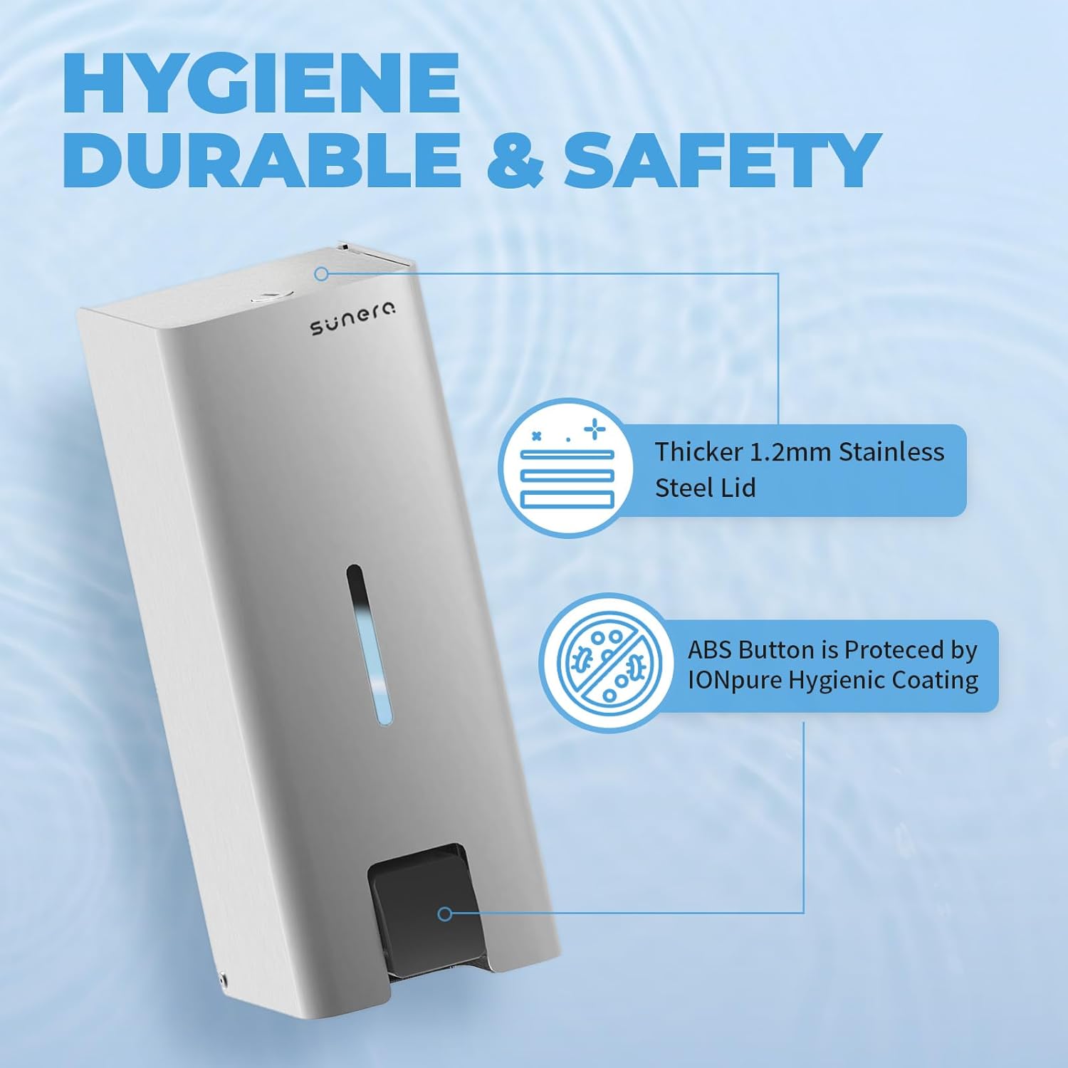 Sunera Commercial Soap Dispenser Wall Mount Luxury 304 Stainless Steel Soap Dispenser Kitchen Bathroom Industrial Push Hand Sanitizer Dispenser 1000ml SUNERA